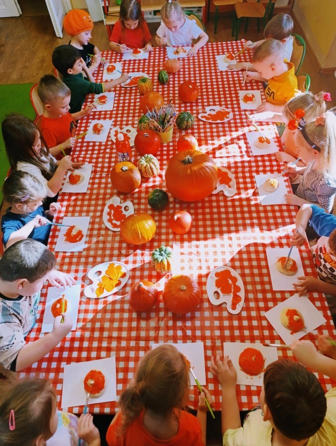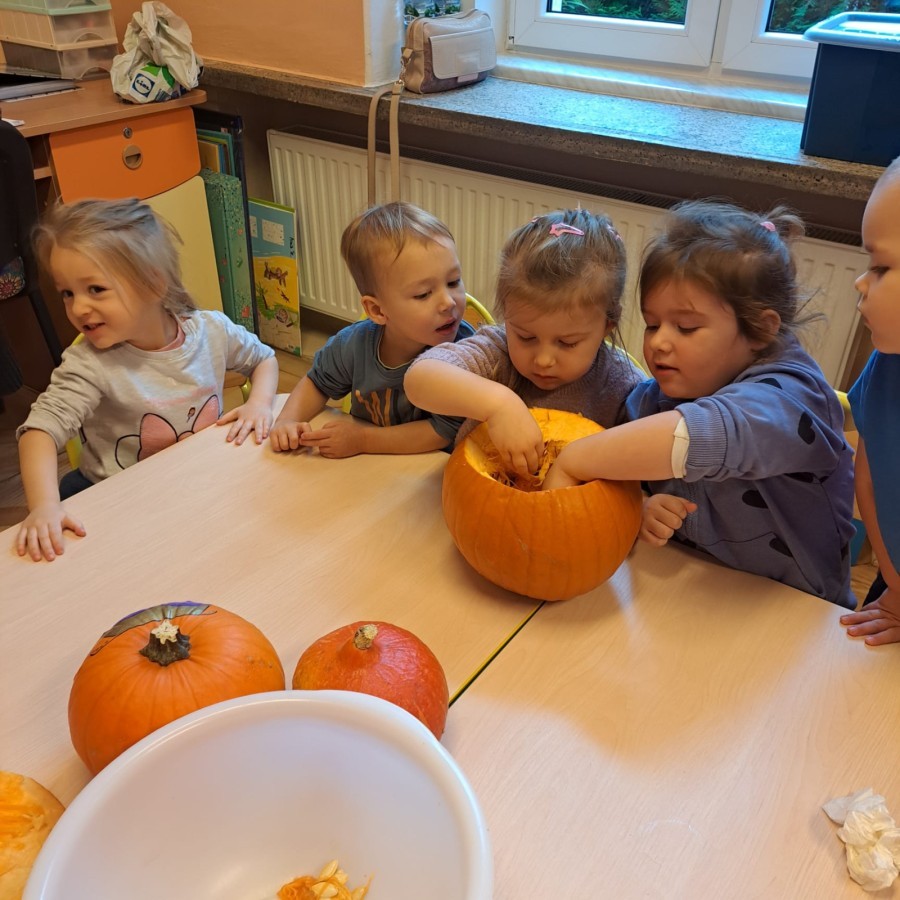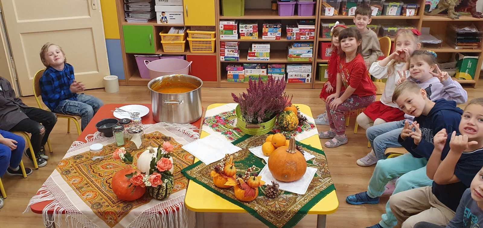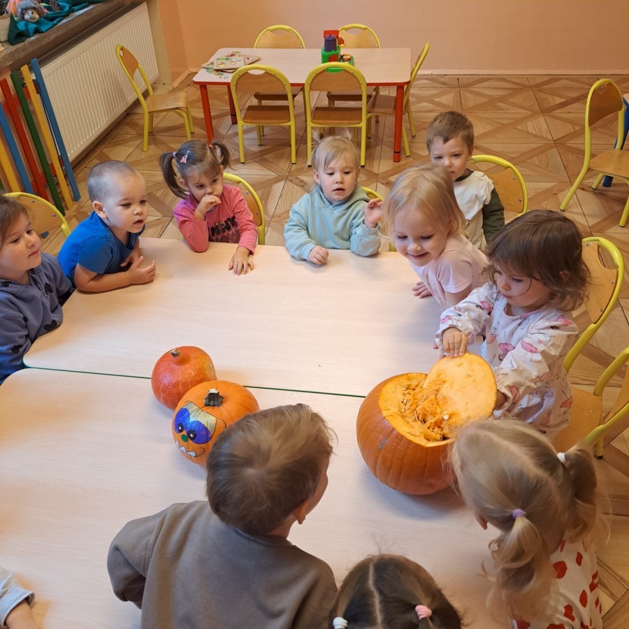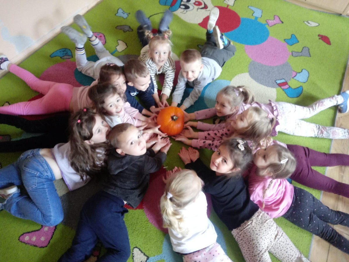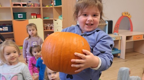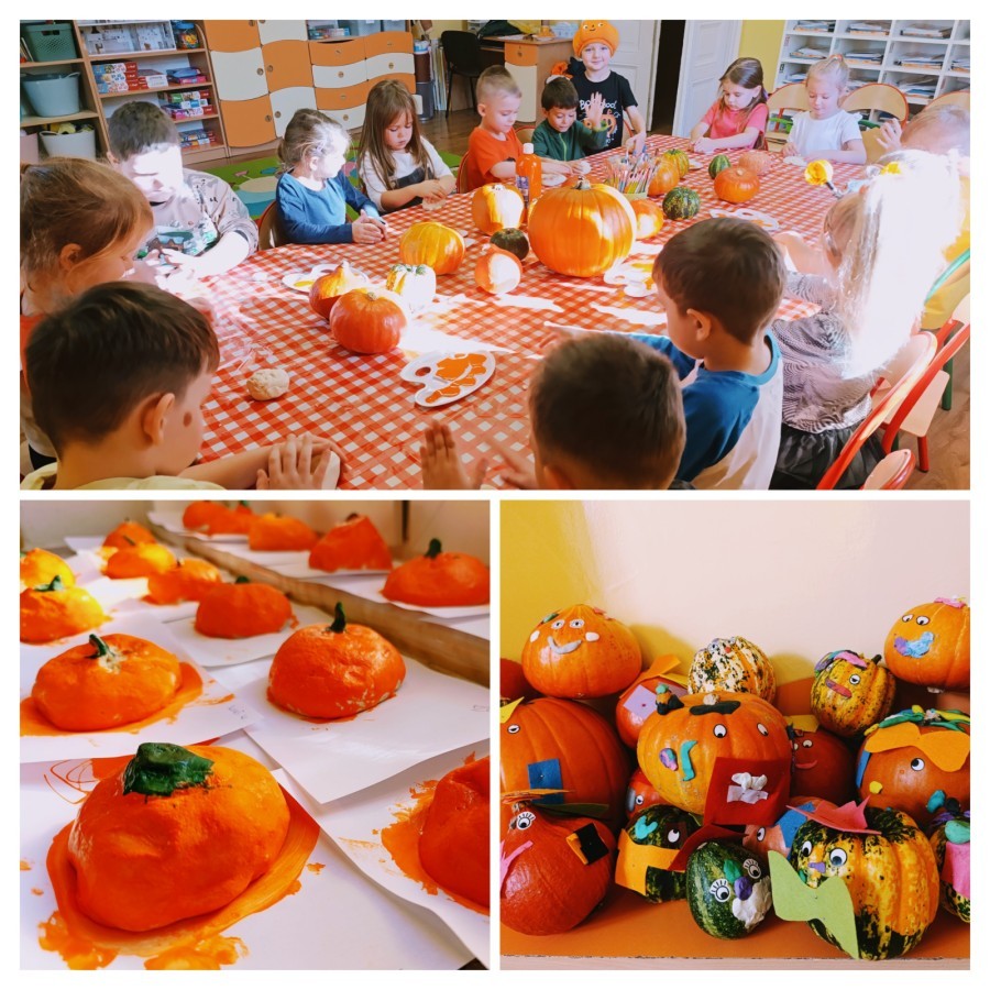 Pod koniec października w naszym przedszkolu zrobiło się wyjątkowo pomarańczowo i radośnie! Obchodziliśmy Dzień Dyni – święto, które na stałe wpisało się w kalendarz naszych wydarzeń. Tego dnia przedszkolne sale zamieniły się w prawdziwe dyniowe królestwo. Przedszkolaki poznały różne odmiany dyni, ich kolory, kształty i zastosowanie – nie tylko w kuchni! Nie zabrakło wesołych zabaw ruchowych, konkursów, pieczenia przepysznych ciast i babeczek oraz tworzenia kreatywnych prac plastycznych z wykorzystaniem dyni. Pomysłowość i zaangażowanie dzieci przerosło nasze oczekiwania! Dzień Dyni był pełen radości, kreatywności i dyniowych niespodzianek.