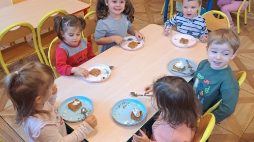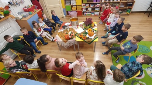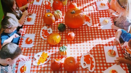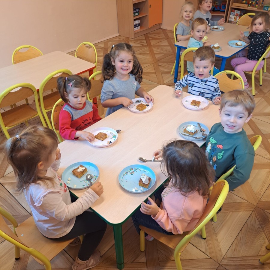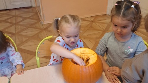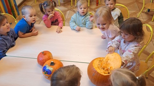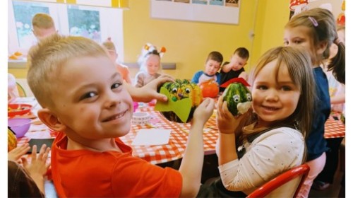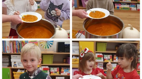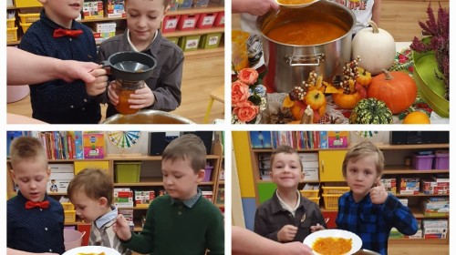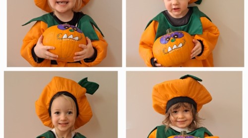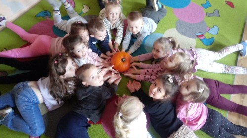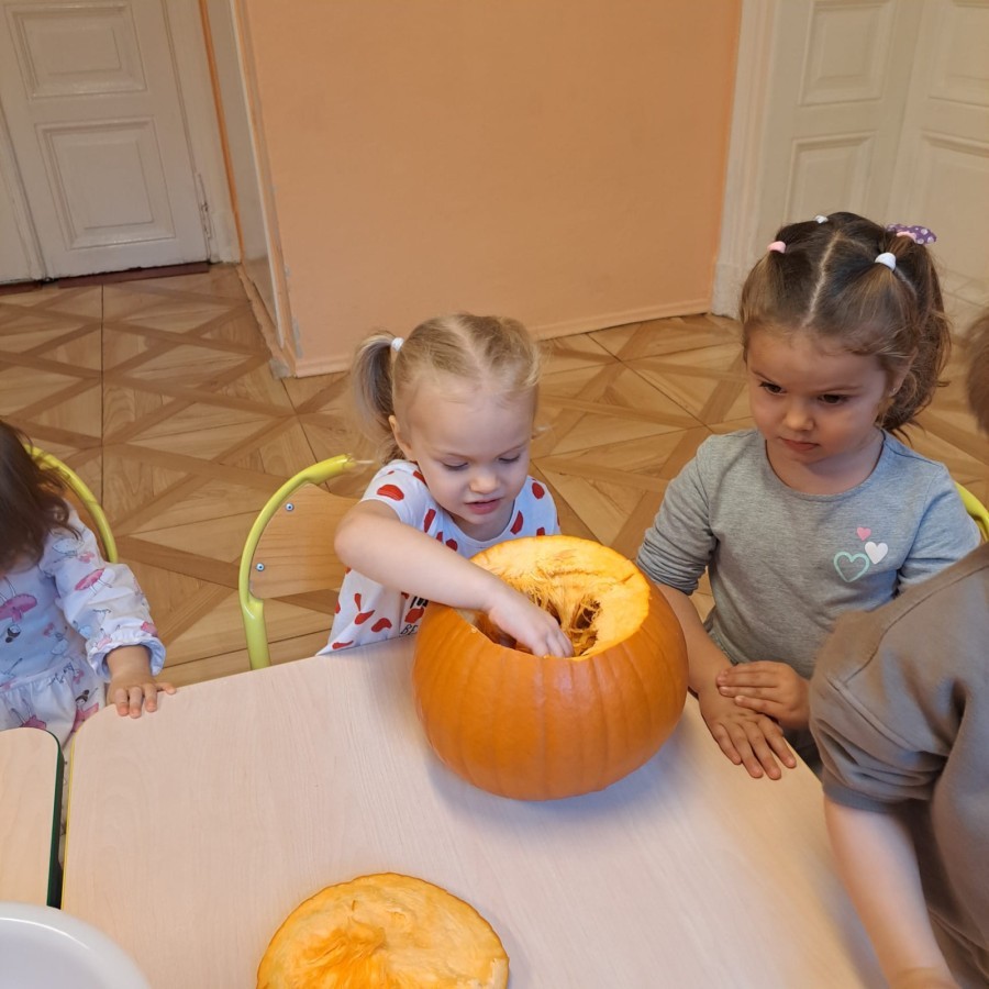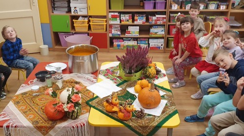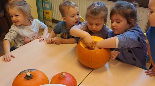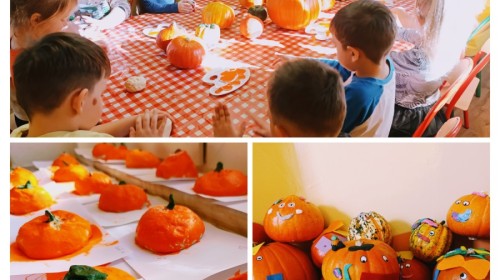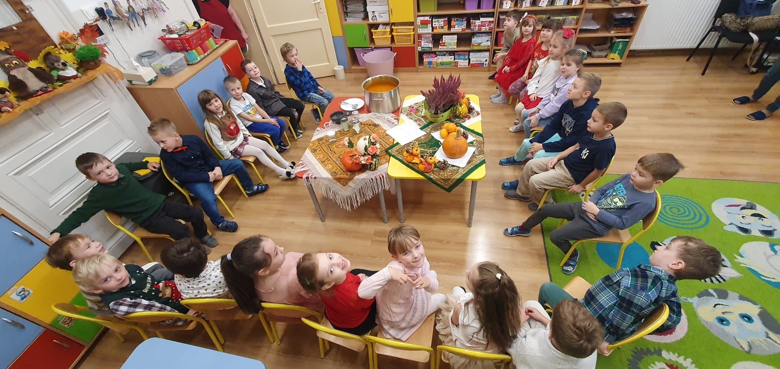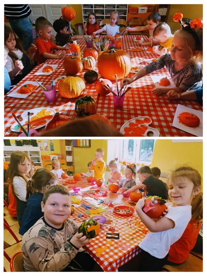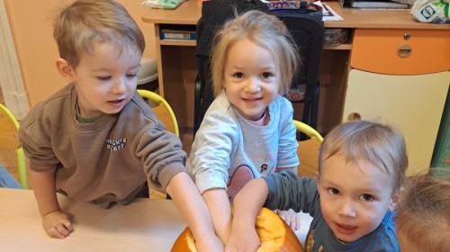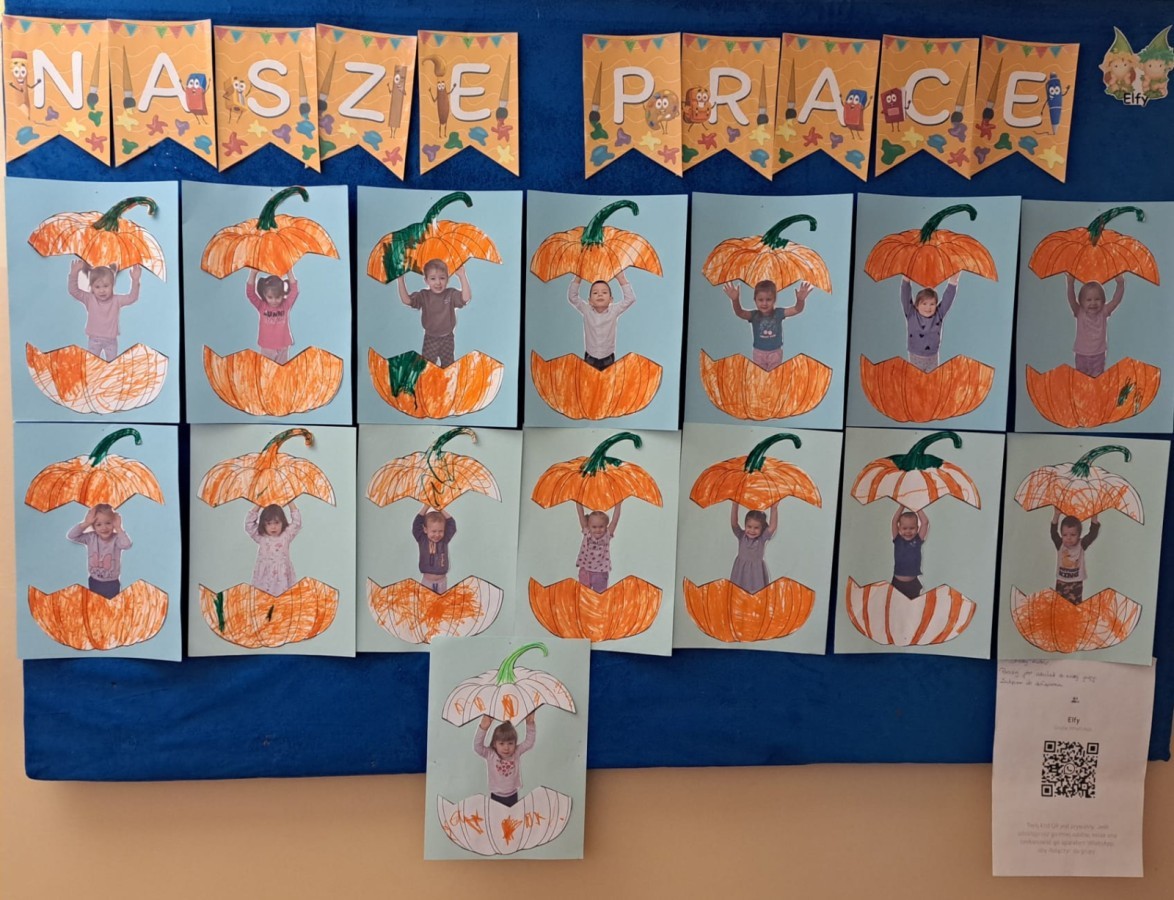 Pod koniec października w naszym przedszkolu zrobiło się wyjątkowo pomarańczowo i radośnie! Obchodziliśmy Dzień Dyni – święto, które na stałe wpisało się w kalendarz naszych wydarzeń. Tego dnia przedszkolne sale zamieniły się w prawdziwe dyniowe królestwo. Przedszkolaki poznały różne odmiany dyni, ich kolory, kształty i zastosowanie – nie tylko w kuchni! Nie zabrakło wesołych zabaw ruchowych, konkursów, pieczenia przepysznych ciast i babeczek oraz tworzenia kreatywnych prac plastycznych z wykorzystaniem dyni. Pomysłowość i zaangażowanie dzieci przerosło nasze oczekiwania! Dzień Dyni był pełen radości, kreatywności i dyniowych niespodzianek.