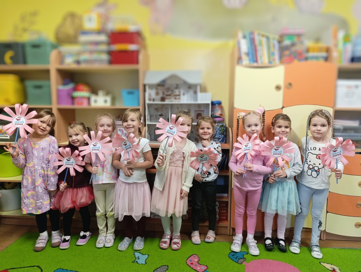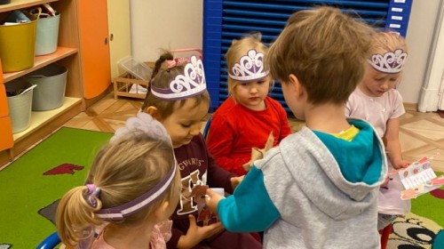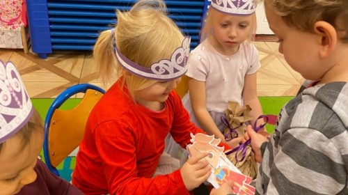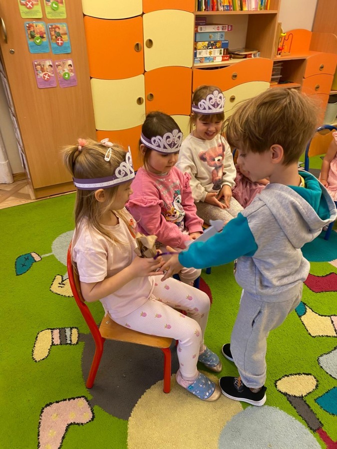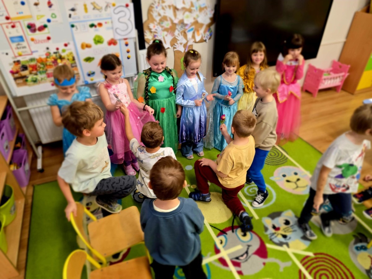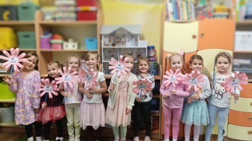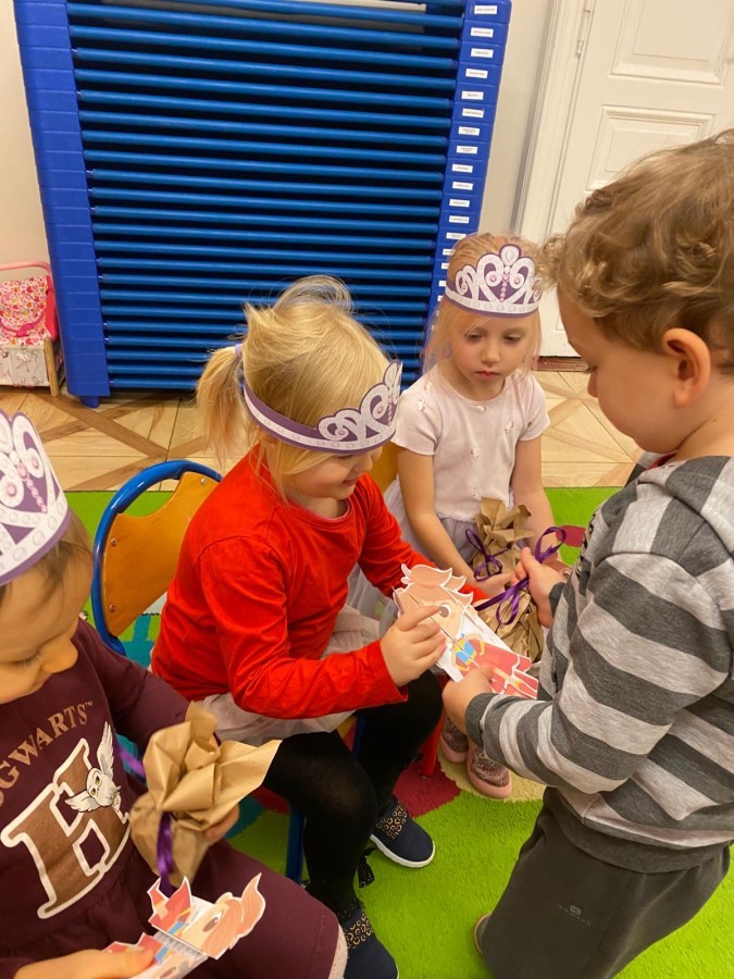 Nasze Przedszkolne Księżniczki błyszczały tego dnia jeszcze bardziej niż zwykle!:) To był piątek pełen uśmiechów, radości i miłych niespodzianek. Świętowaliśmy Dzień Dziewczynek - nasi mali Dżentelmeni składali koleżankom życzenia, wręczali laurki i drobne upominki, a wspólne zabawy i tańce wprowadziły wszystkich w doskonały nastrój!:)