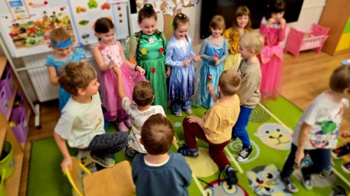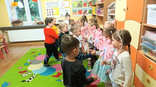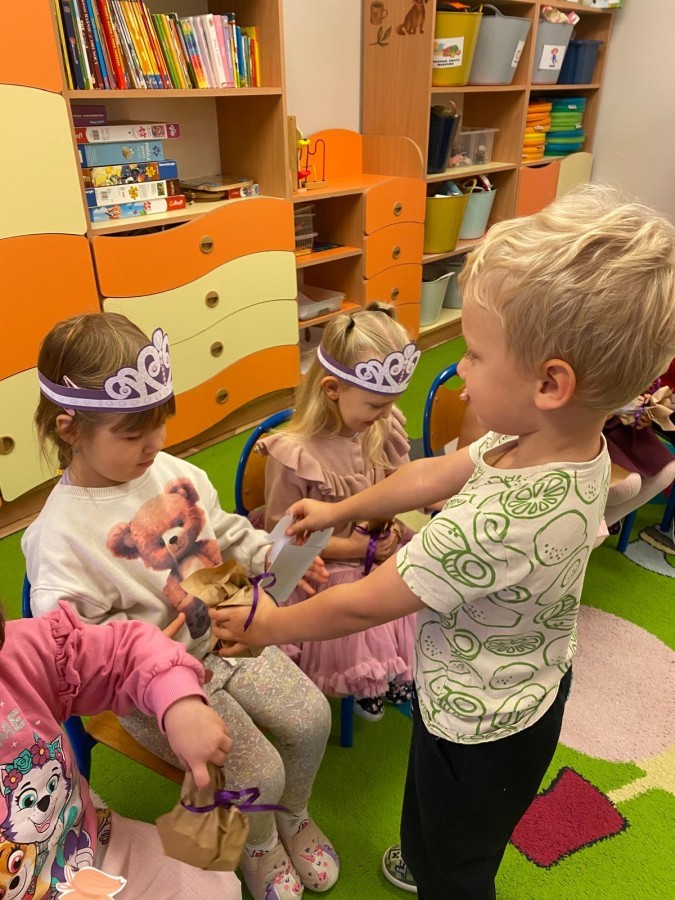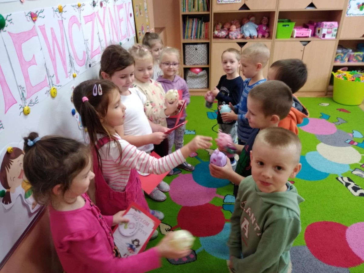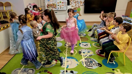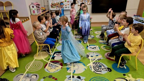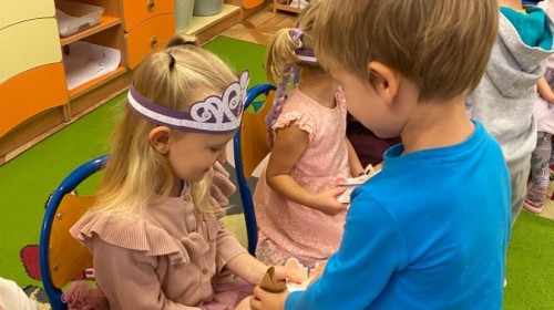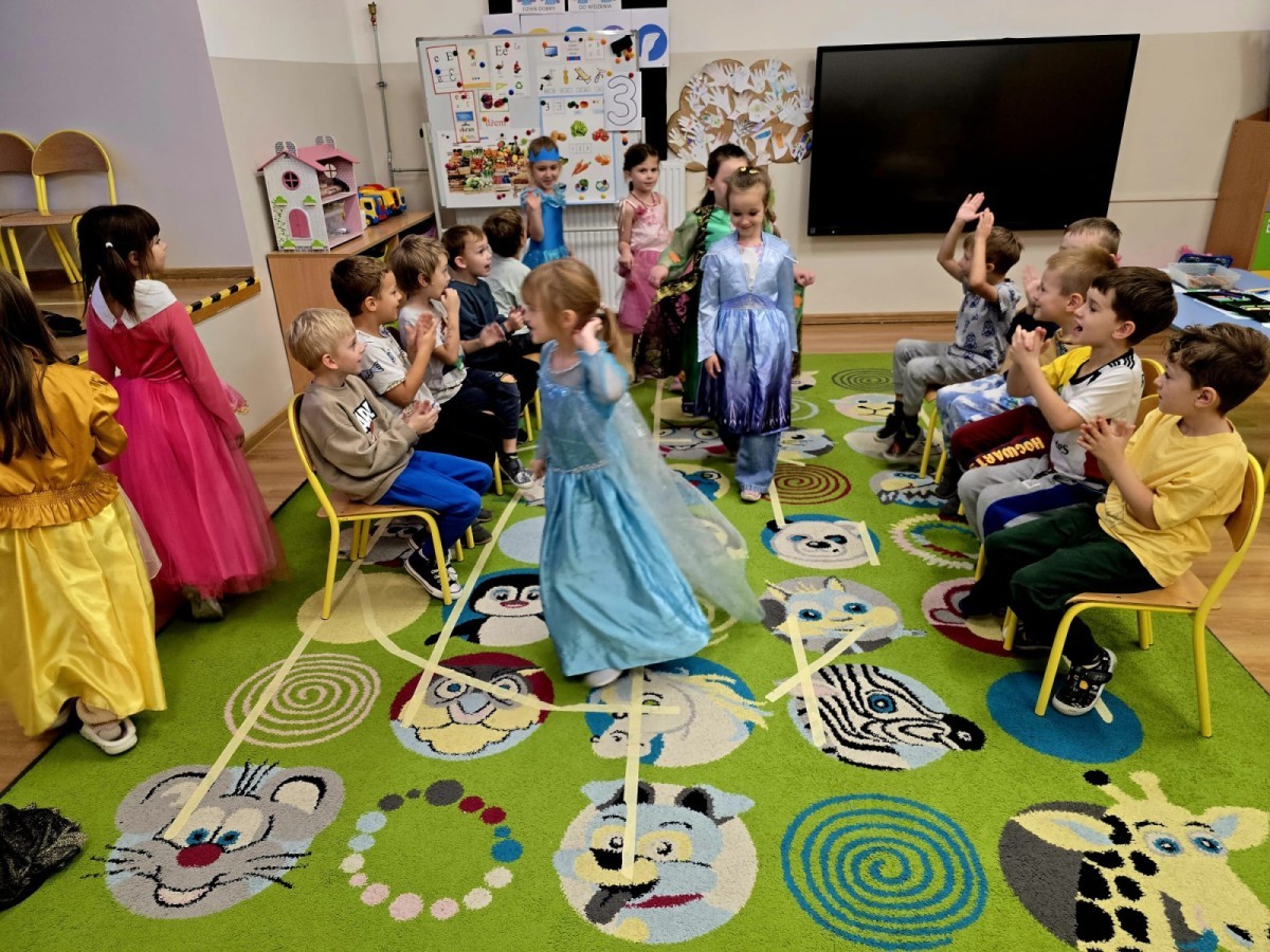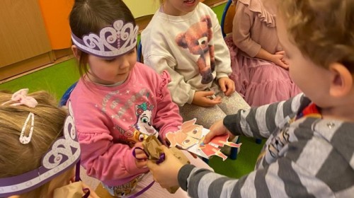 Nasze Przedszkolne Księżniczki błyszczały tego dnia jeszcze bardziej niż zwykle!:) To był piątek pełen uśmiechów, radości i miłych niespodzianek. Świętowaliśmy Dzień Dziewczynek - nasi mali Dżentelmeni składali koleżankom życzenia, wręczali laurki i drobne upominki, a wspólne zabawy i tańce wprowadziły wszystkich w doskonały nastrój!:)