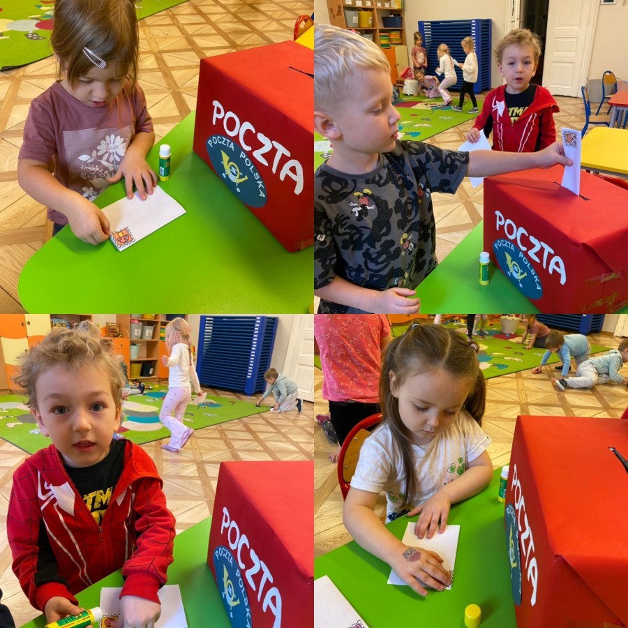 Dnia 21 października obchodziliśmy w naszym przedszkolu Dzień Poczty Polskiej, czyli święto wszystkich listonoszy i pracowników poczty. Celem wizyty na Poczcie oraz przedszkolnych zajęć grupowych było zapoznanie dzieci z pracą listonosza, znaczeniem poczty w życiu codziennym oraz sposobem wysyłania listów i paczek. Dzień Poczty okazał się pełen wrażeń, wiedzy i dobrej zabawy!:) Nasze Przedszkolaki już wiedzą gdzie wrzucić list do ... Mikołaja;)
