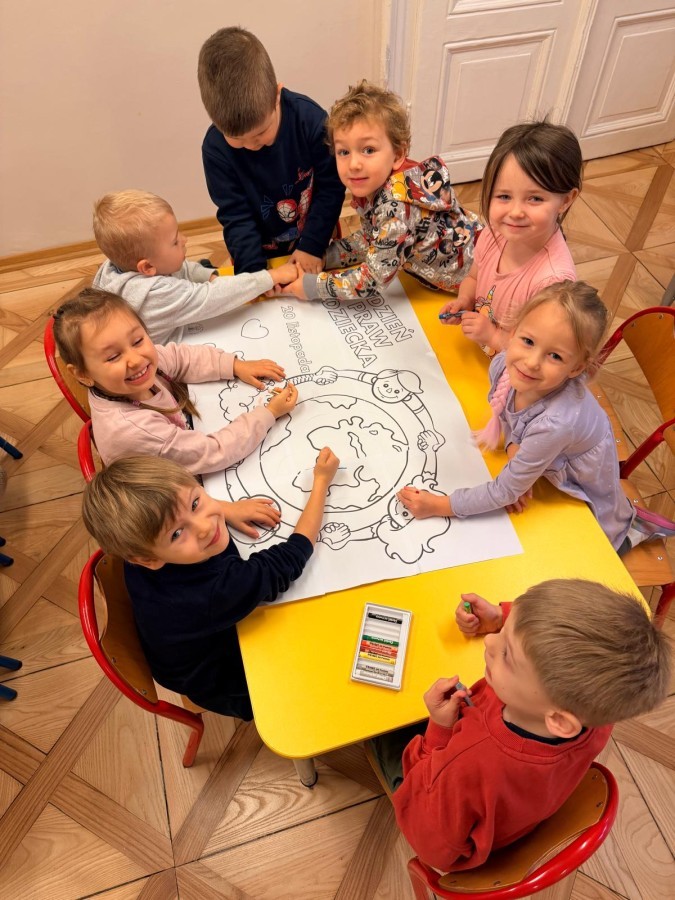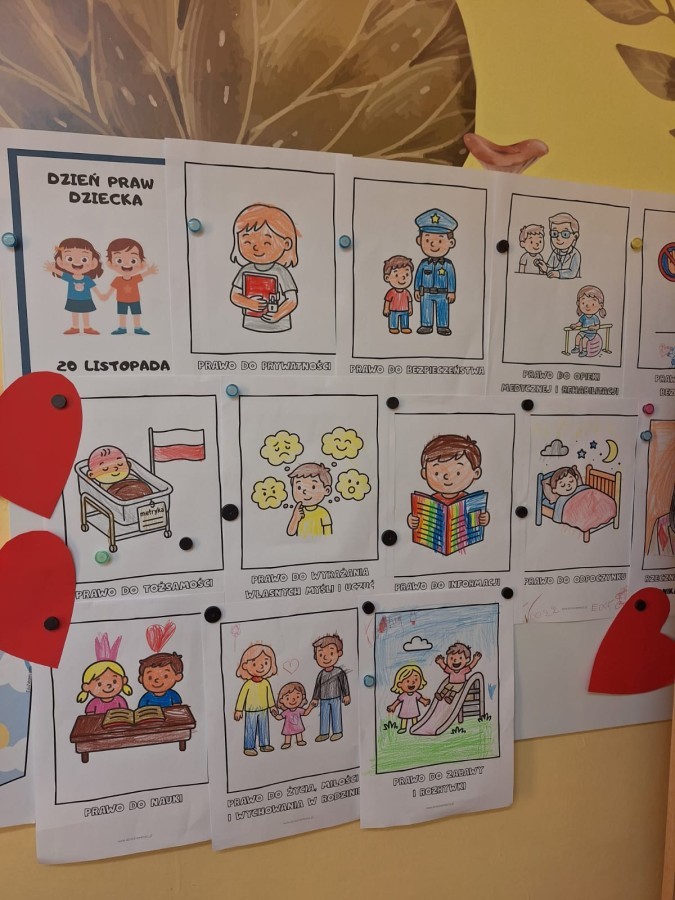 20 listopada w naszym przedszkolu obchodziliśmy Dzień Praw Dziecka. Dzień rozpoczął się rozmową o tym, czym są prawa dziecka i dlaczego są ważne. Dzieci oglądały ilustracje, słuchały opowieści i dzieliły się własnymi spostrzeżeniami. Następnie wzięły udział w zabawach tematycznych, takich jak tworzenie wspólnego plakatu „Nasze prawa”, kolorowanie obrazków czy odgrywanie krótkich scenek pokazujących, jak można okazywać sobie szacunek i pomagać innym. Zajęcia zakończyły się wykonaniem pamiątkowych prac plastycznych oraz krótką refleksją o tym, co każde dziecko najbardziej ceni w przedszkolu:)
