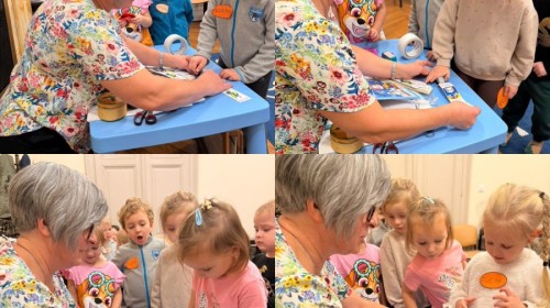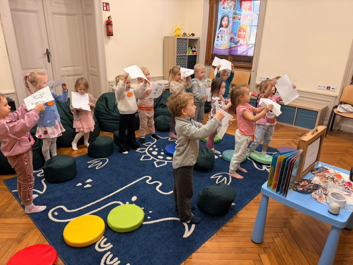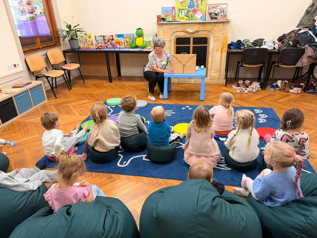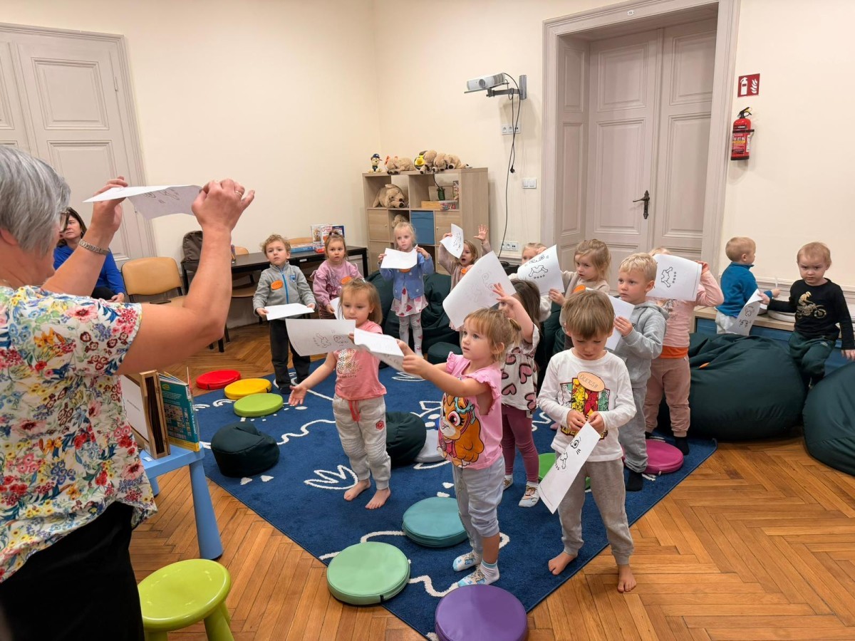 W czwartek dzieci z grupy "Misiów" odwiedziły Bibliotekę Pedagogiczną. W magicznej atmosferze bajek i opowieści odbyło się spotkanie z teatrzykiem Kamishibai – tradycyjną japońską sztuką opowiadania historii przy pomocy ilustrowanych kart. Na małej scenie, teatrzyku zwanym butai, pojawiały się kolejno barwne ilustracje, a każda z nich odkrywała nowy fragment bajki. Czasem było wesoło, czasem tajemniczo, a niekiedy wzruszająco. Słuchacze z zapartym tchem śledzili przygody bohaterów, wczuwając się w każdą scenę. Po spektaklu uczestnicy mogli sami spróbować swoich sił w roli bajarzy – tworzyli własne ilustracje, wymyślali zakończenia historii i uczyli się, jak opowiadać tak, by zaczarować publiczność. Był też czas ,by zamienić się w królewnę oraz króla:) Spotkanie z teatrzykiem Kamishibai okazało się bajkową podróżą do świata opowieści, pełną kolorów, emocji i wspólnej radości:)
