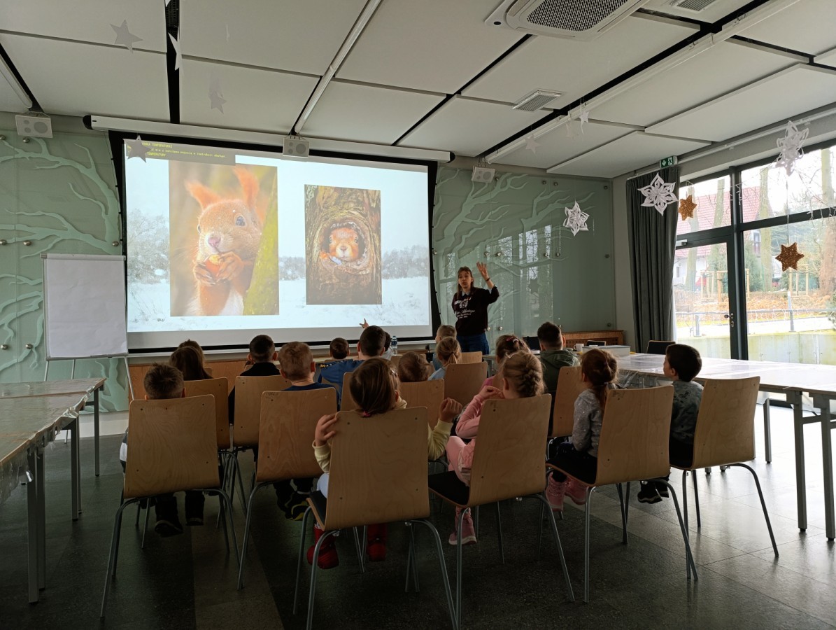 W dniu dzisiejszym dzieci z grupy "Krasnali" były na kreatywnych warsztatach w Centrum Edukacji Ekologicznej Ekosynteza w Bielsku-Białej. Odbyły się tam wyjątkowe warsztaty przyrodnicze i prelekcje pt. "Jak odpoczywa przyroda i zwierzęta zimą?". Był też ekologiczny spacer, na którym szukaliśmy zimowych kryjówek zwierząt oraz ich śladów. Znalazł się również czas na obserwację przyrody, gdzie pierwsze skrzypce zagrała ... kochająca dzieci .. wiewiórka!:) To był wspaniały dzień, pełen nauki i miłych wrażeń:)