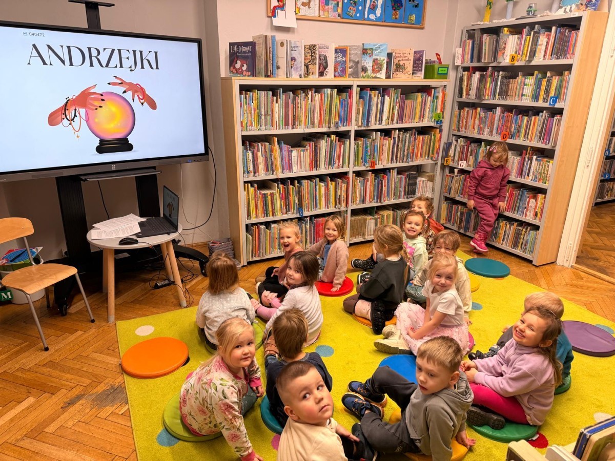 Wizyta przedszkolaków w bibliotece z okazji Andrzejek przebiegła w radosnej i magicznej atmosferze. Dzieci uczestniczyły w wielu zabawach związanych z andrzejkowymi tradycjami, wspólnie słuchały opowieści o Andrzejkach oraz spędziły czas na integracji w przyjaznym, pełnym ciekawości otoczeniu biblioteki. Spotkanie było dla nich miłym i pełnym wrażeń doświadczeniem a zakończyło się grupowym tworzeniem zaczarowanych prac plastycznych:)