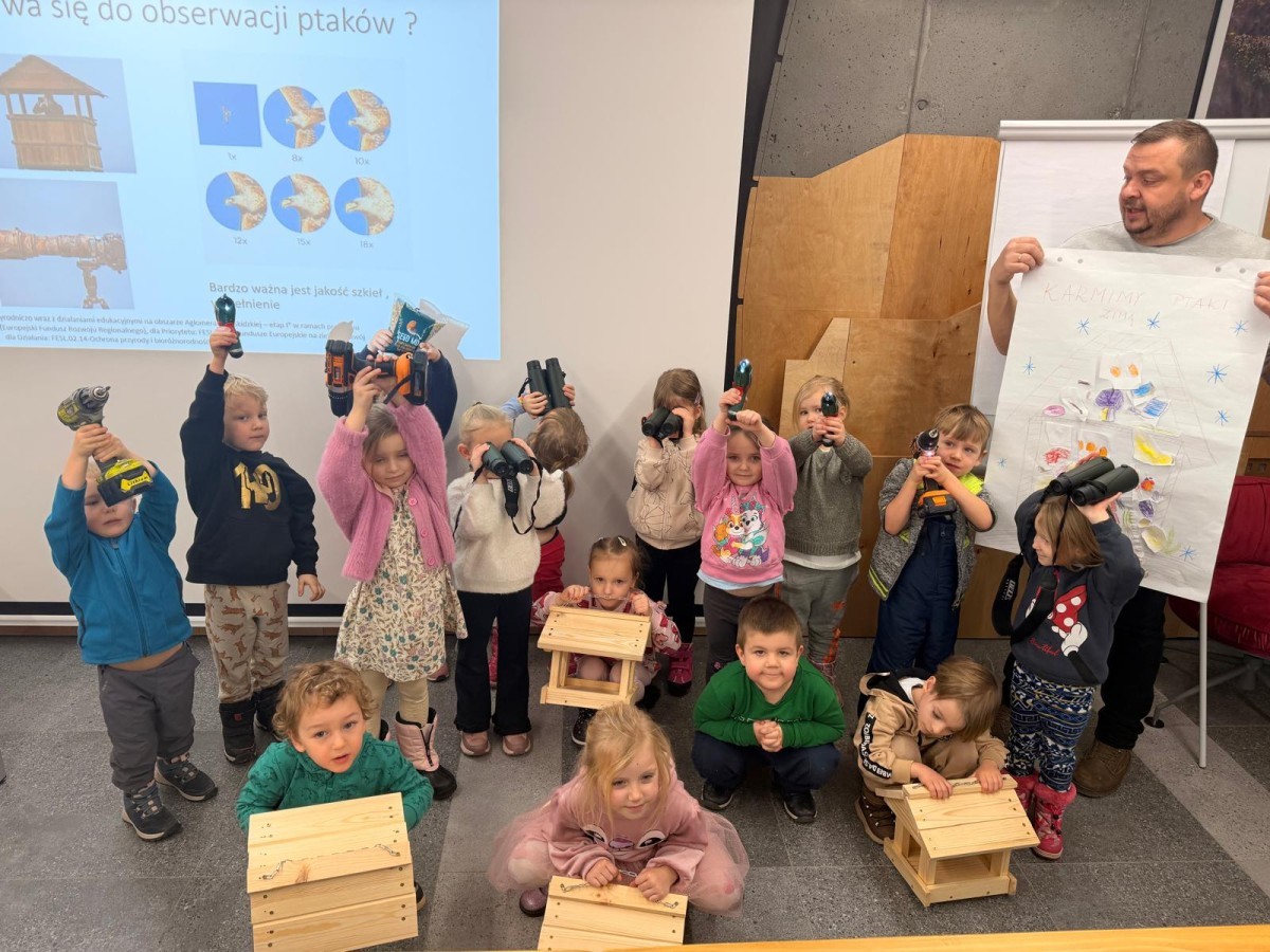 W dniu dzisiejszym dzieci z grupy "Misiów" były na kreatywnych warsztatach w Centrum Edukacji Ekologicznej Ekosynteza w Bielsku-Białej. Celem warsztatów było pokazanie dzieciom, jak ważna jest pomoc ptakom zimą i jak robić to w sposób bezpieczny. Program zajęć obejmował część teoretyczną m.in. naukę rozpoznawania ptaków przy pomocy lornetek oraz praktyczną, na której Misie wykonywały samodzielnie przepiękne karmniki:) Zdobić one będą nasz Przedszkolny Ogród i przypominać wszystkim dlaczego ptaki są ważne dla przyrody. Wycieczka była edukacyjna, ciekawa i dała dzieciom wiele radości i niezapomnianych wrażeń:)