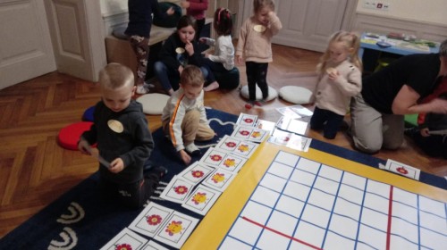 Przedszkolaki z grupy "Tygryski" odwiedziły Bibliotekę Pedagogiczną i wzięły udział w zajęciach pt." Zakodowana Biblioteka". Dzieci uczyły się, że kodowanie to nie tylko komputery, ale także sposób na wspaniałą zabawę i rozwijanie logicznego myślenia. Tygryski układały kolorowe kody z kubeczków, emblematów i drukowanych kart tematycznych. Zajęcia były pełne śmiechu, współpracy i niesamowitej energii. Dzieci udowodniły, że potrafią myśleć jak prawdziwi programiści – planować, próbować i nie poddawać się, gdy coś nie wychodzi od razu. To były bardzo udane ćwiczenia:)