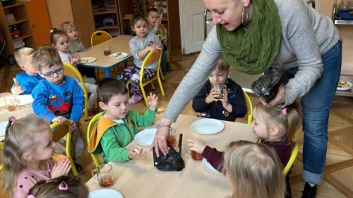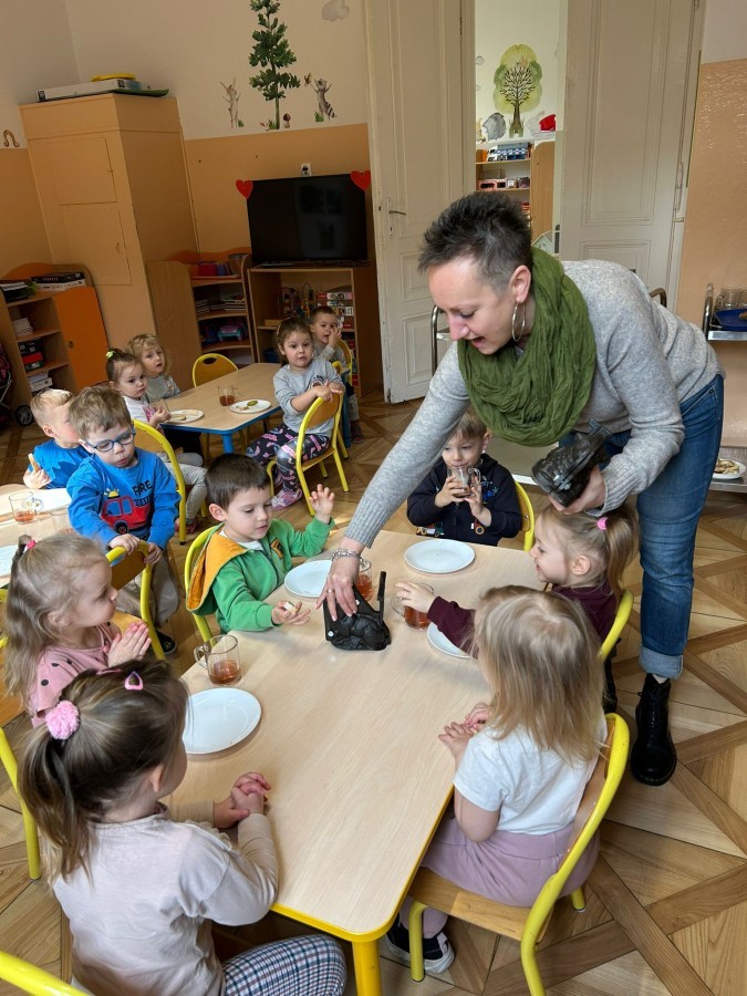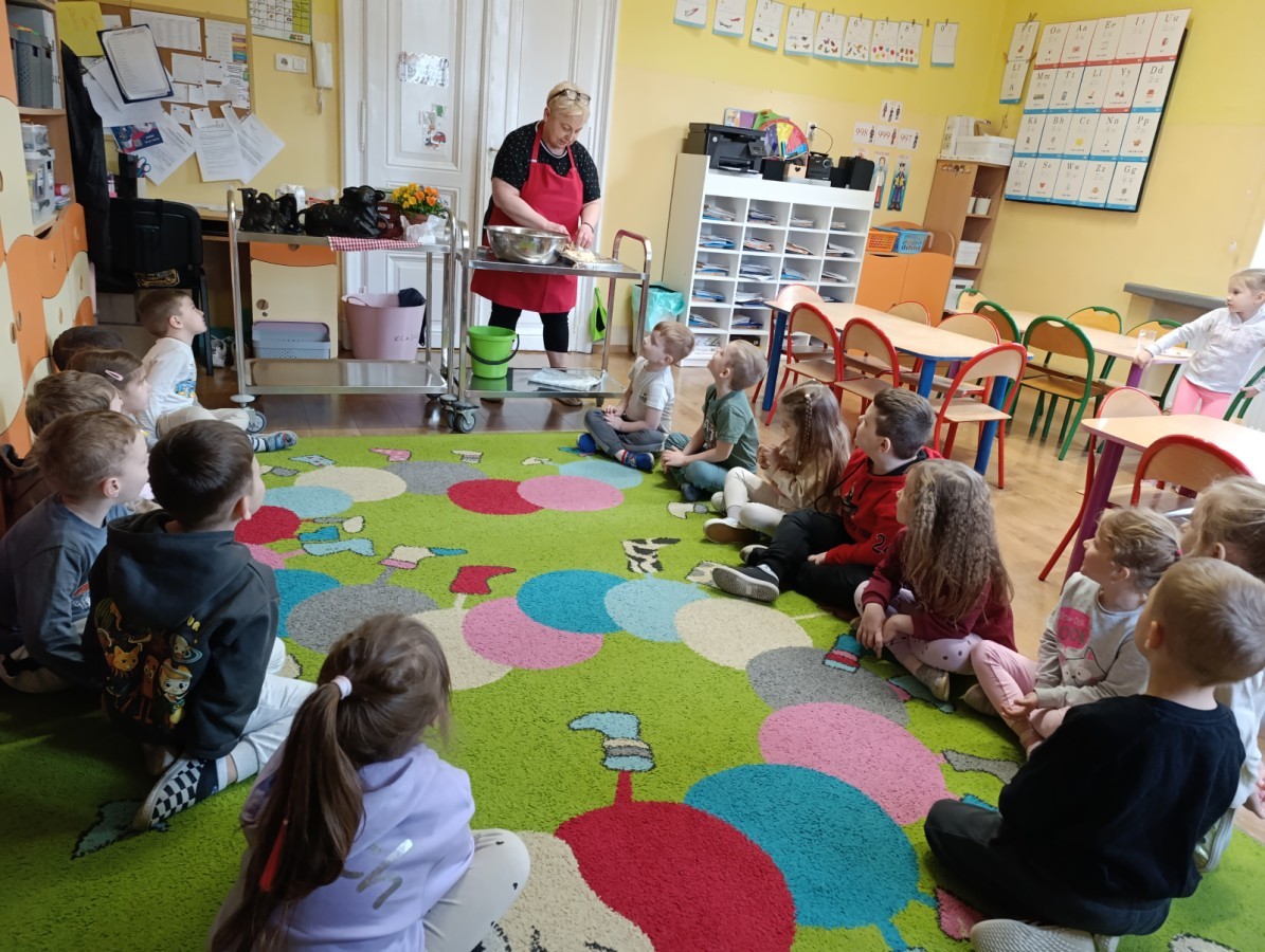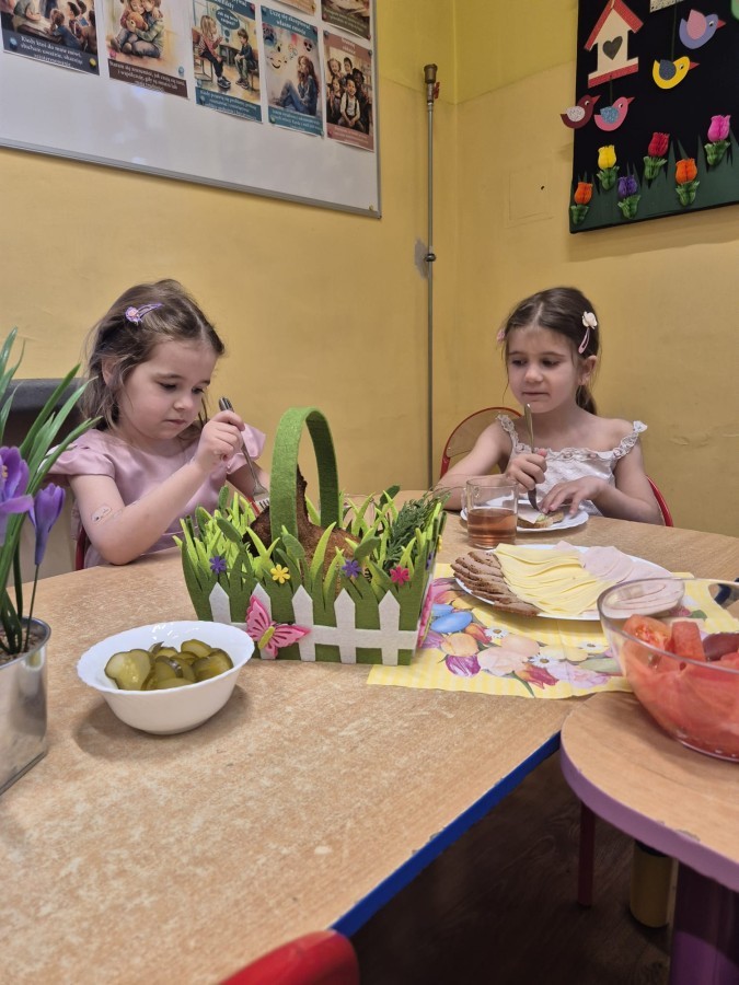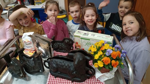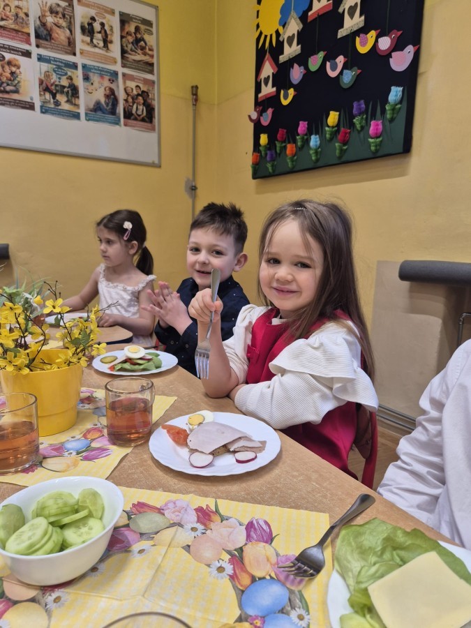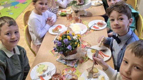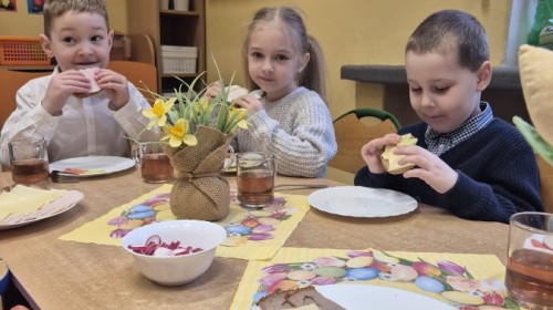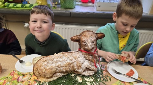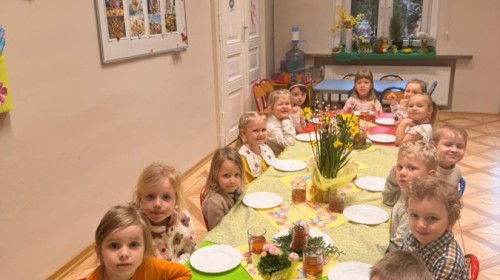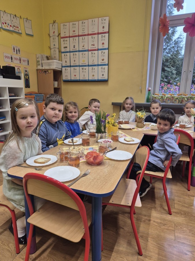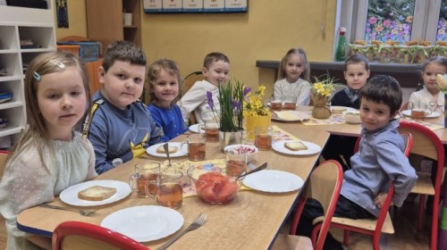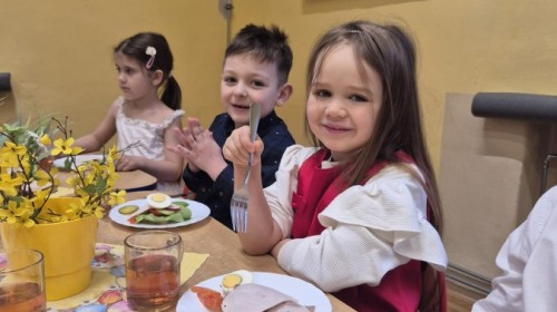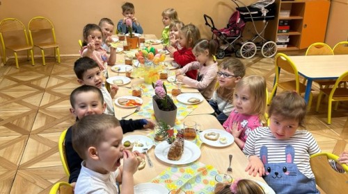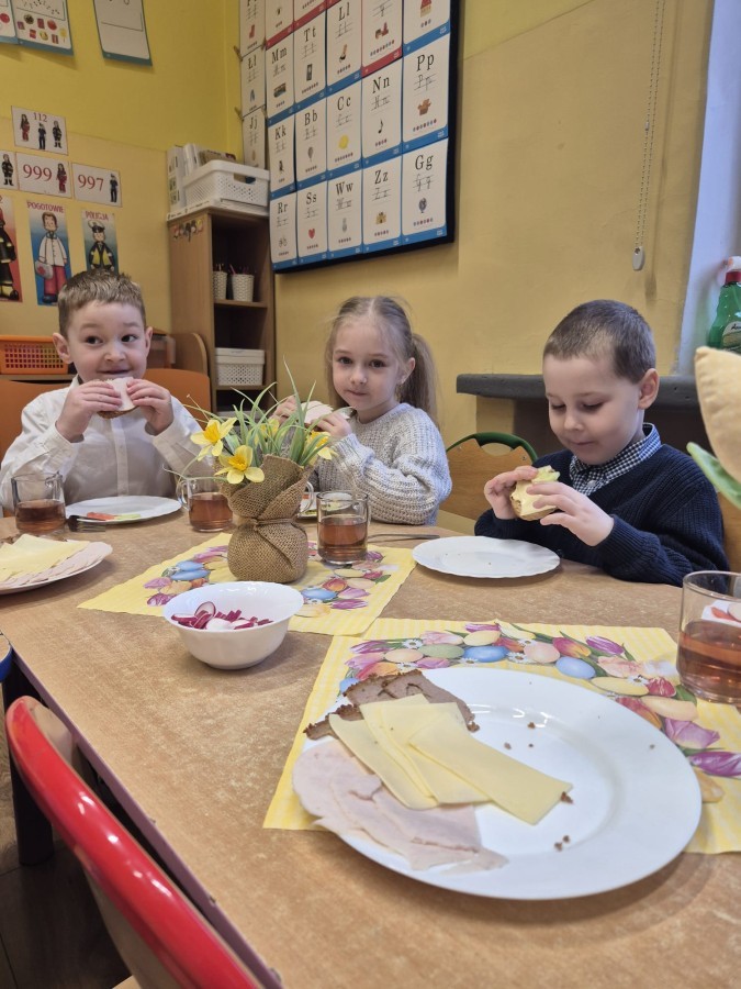 W piątek w naszym przedszkolu odbyło się uroczyste Śniadanie Wielkanocne. Dzieci zasiadły przy pięknie udekorowanych stołach, na których nie zabrakło tradycyjnych wielkanocnych potraw, kolorowych pisanek oraz wiosennych ozdób. Dzień wcześniej każda grupa przygotowywała wielkanocnego baranka, zajączka i kurkę– wielkanocne wypieki dzieci wykonały razem z naszą kochaną panią Agatką. Podczas śniadania dzieci miały okazję wspólnie spędzić czas, porozmawiać o tradycjach wielkanocnych oraz skosztować przygotowanych przysmaków. Po śniadaniu były poszukiwania wielkanocnego zajączka, który zostawił dla wszystkich piękne upominki:) Było dużo śmiechu, radości i pozytywnych emocji:)