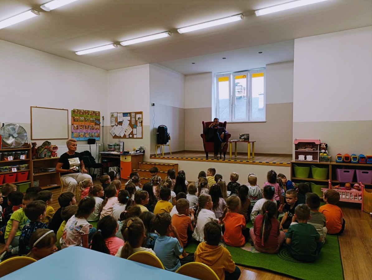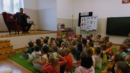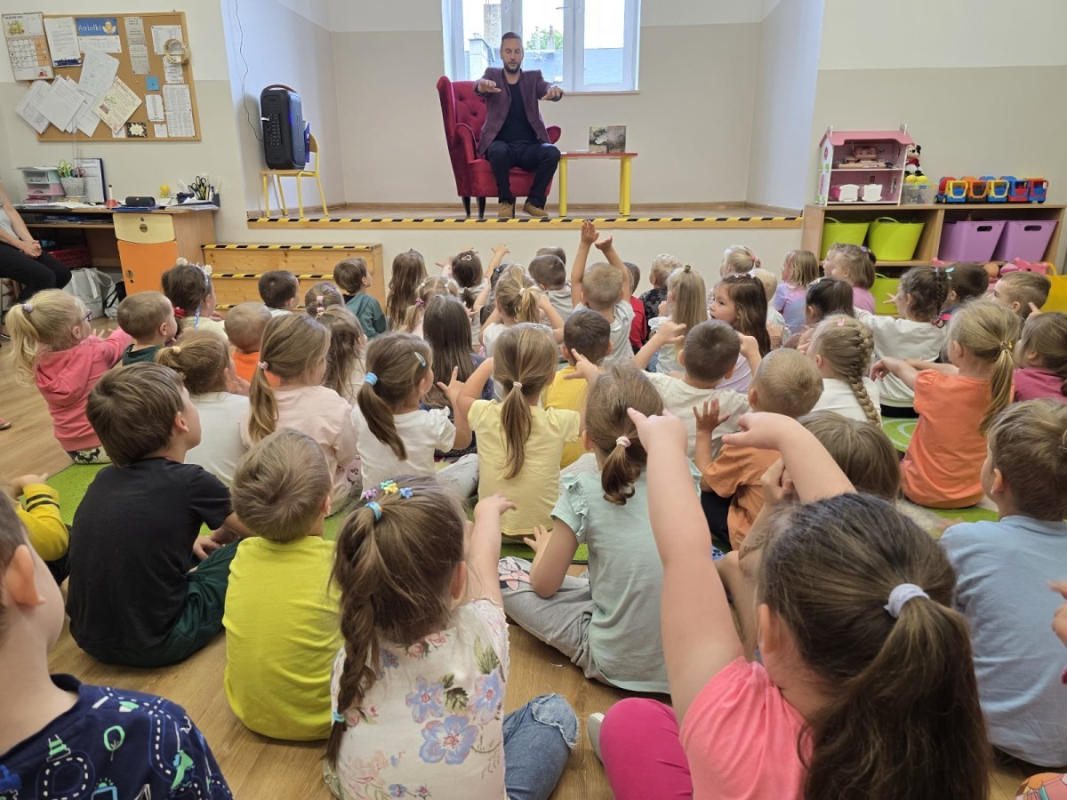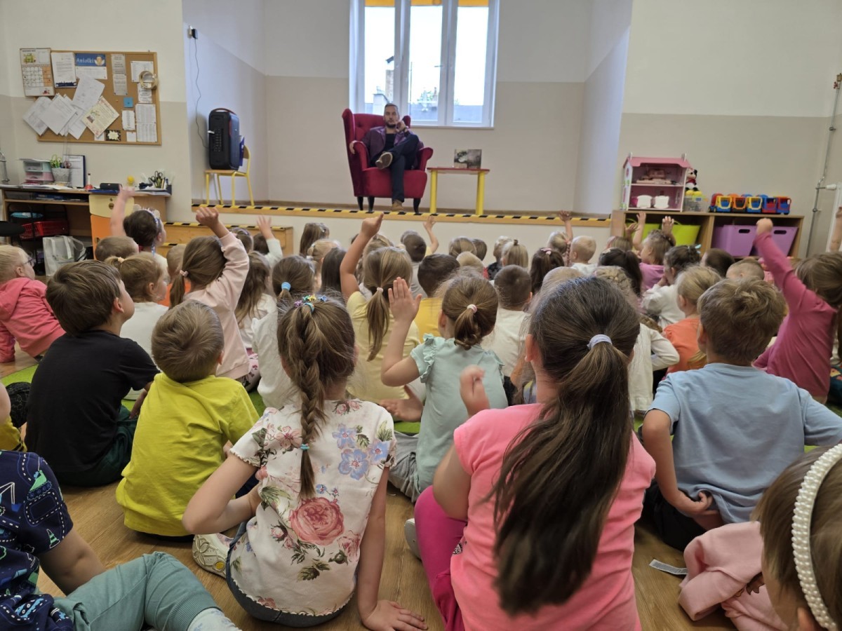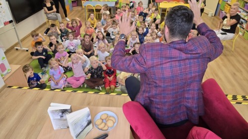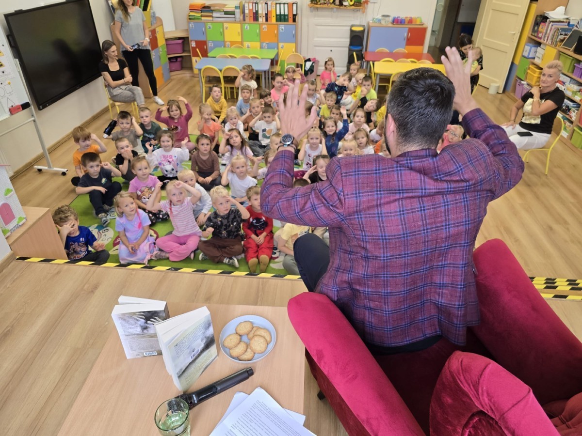 Dziś nasze przedszkole odwiedził wyjątkowy gość - autor książek dla dzieci, pan Przemysław Samuel Gąsiorek. Podczas spotkania zaprezentował swoją książkę, a następnie czytał jej fragmenty wszystkim grupom przedszkolnym. Dzieci z zainteresowaniem słuchały opowieści i zadawały pytania autorowi. To była cenna lekcja, rozwijająca wyobraźnię oraz miłość do literatury. Serdecznie zachęcamy do zakupu książki Pana Przemysława Samuela Gąsiorka i wspólnego odkrywania jej w domowym zaciszu: