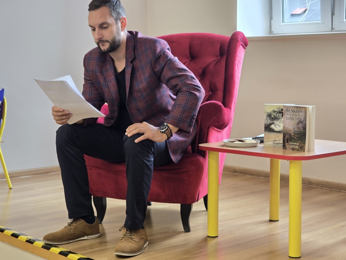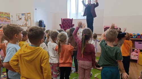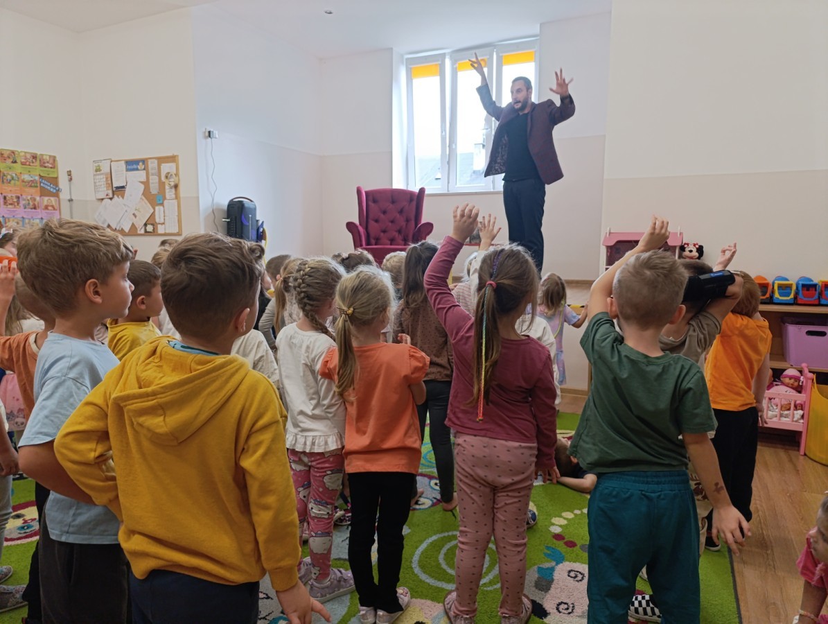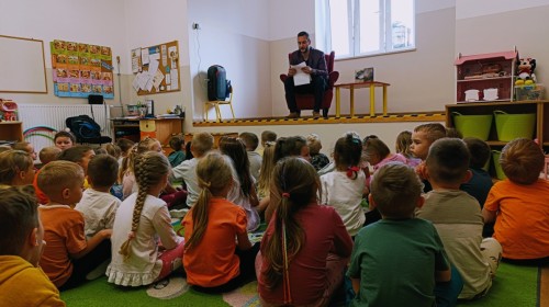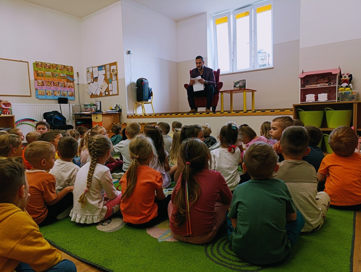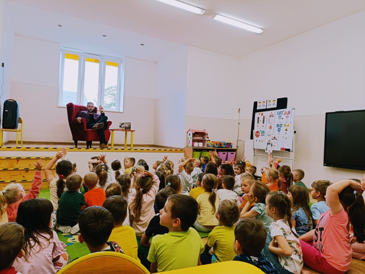 Dziś nasze przedszkole odwiedził wyjątkowy gość - autor książek dla dzieci, pan Przemysław Samuel Gąsiorek. Podczas spotkania zaprezentował swoją książkę, a następnie czytał jej fragmenty wszystkim grupom przedszkolnym. Dzieci z zainteresowaniem słuchały opowieści i zadawały pytania autorowi. To była cenna lekcja, rozwijająca wyobraźnię oraz miłość do literatury. Serdecznie zachęcamy do zakupu książki Pana Przemysława Samuela Gąsiorka i wspólnego odkrywania jej w domowym zaciszu: