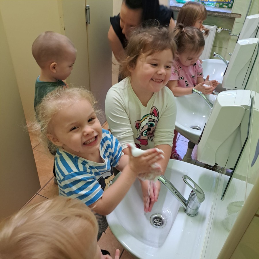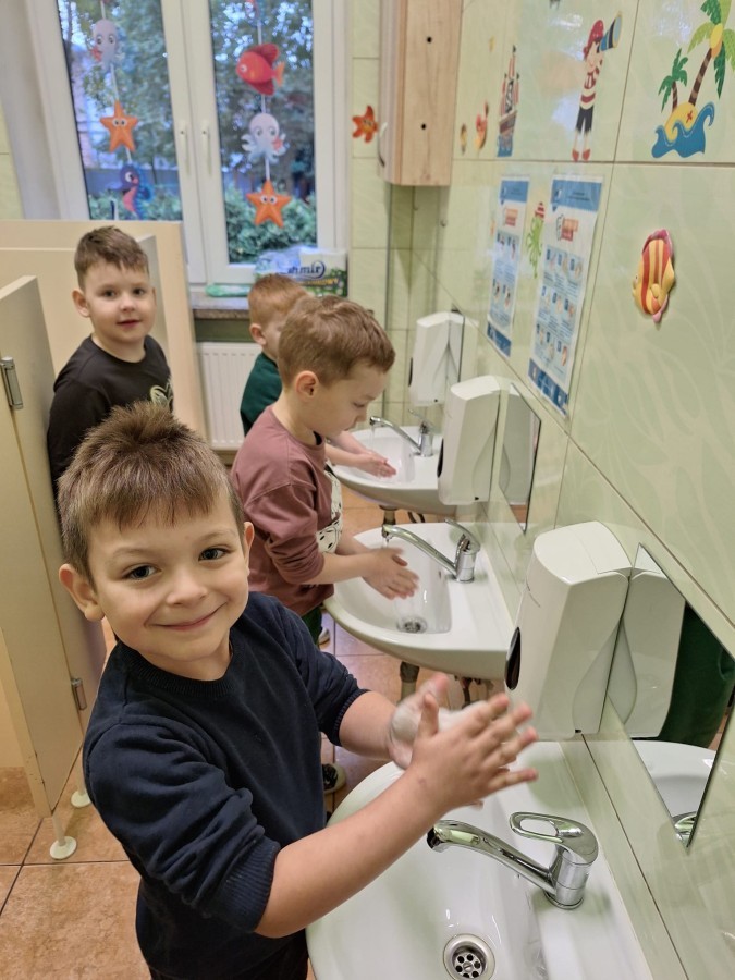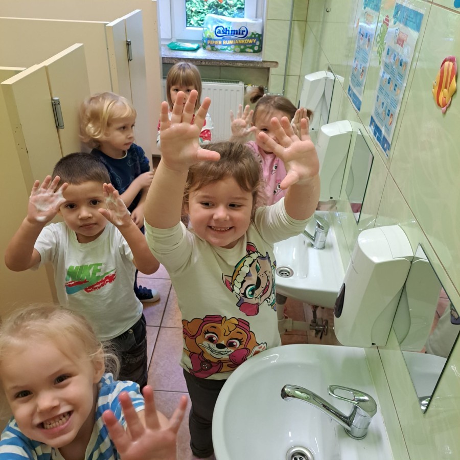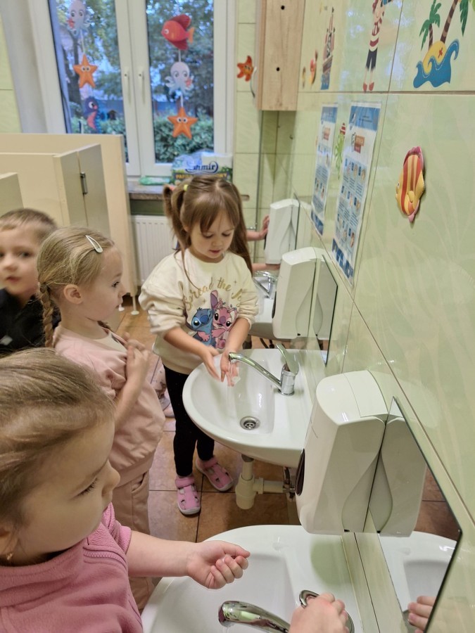 15 października obchodziliśmy w naszym przedszkolu Światowy Dzień Mycia Rąk - ważne święto przypominające, jak ogromne znaczenie ma higiena dla naszego zdrowia. Podczas zajęć dzieci dowiedziały się, dlaczego warto myć ręce, kiedy należy to robić i jak robić to prawidłowo. Wspólnie oglądaliśmy edukacyjne plakaty, bawiliśmy się w zabawy tematyczne i wykonywaliśmy ciekawe eksperymenty. Nie zabrakło też piosenek, rymowanek i wspólnego mycia rąk. Od dzisiaj każdy nasz Przedszkolak jest Mistrzem Czystych Rąk!:)
