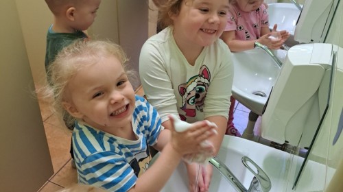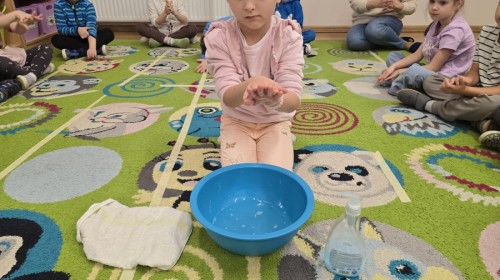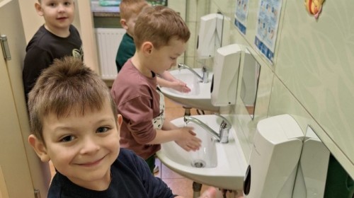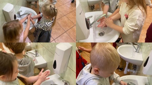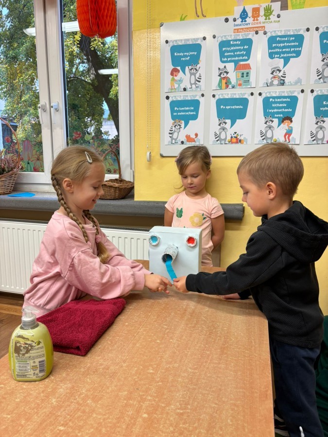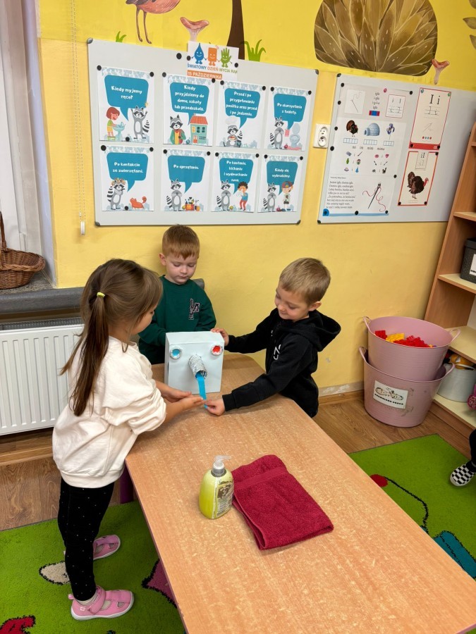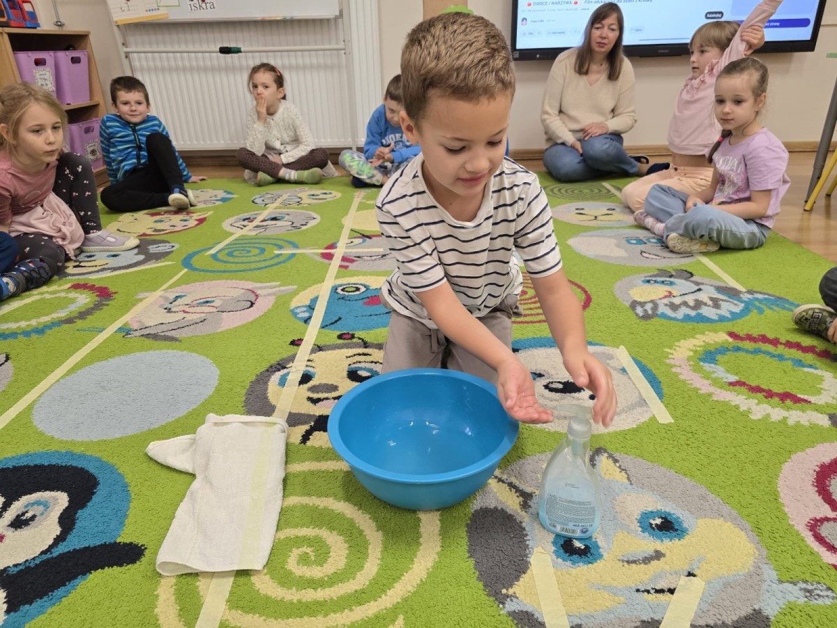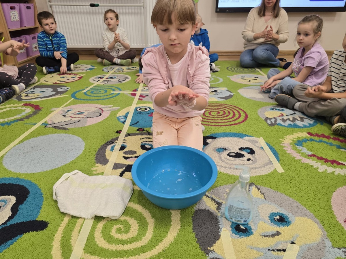15 października obchodziliśmy w naszym przedszkolu Światowy Dzień Mycia Rąk - ważne święto przypominające, jak ogromne znaczenie ma higiena dla naszego zdrowia. Podczas zajęć dzieci dowiedziały się, dlaczego warto myć ręce, kiedy należy to robić i jak robić to prawidłowo. Wspólnie oglądaliśmy edukacyjne plakaty, bawiliśmy się w zabawy tematyczne i wykonywaliśmy ciekawe eksperymenty. Nie zabrakło też piosenek, rymowanek i wspólnego mycia rąk. Od dzisiaj każdy nasz Przedszkolak jest Mistrzem Czystych Rąk!:)