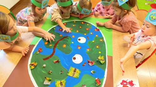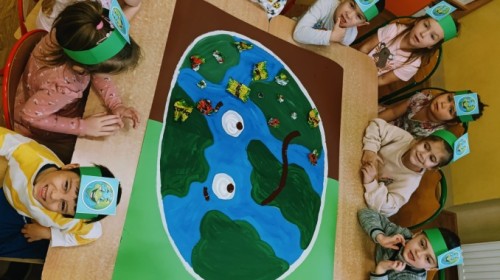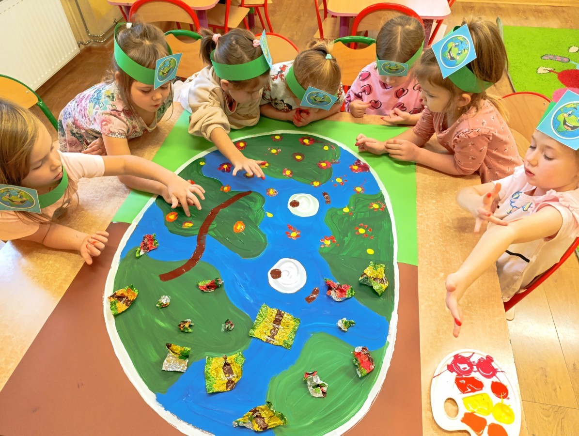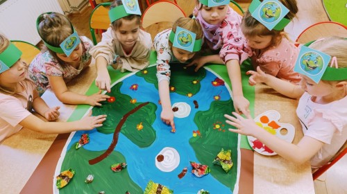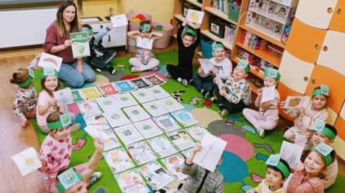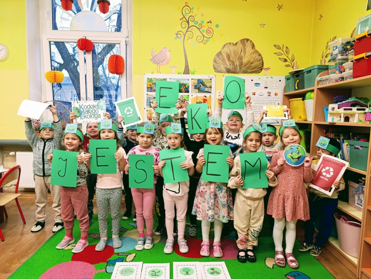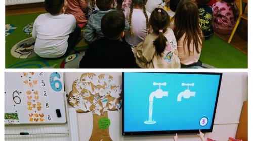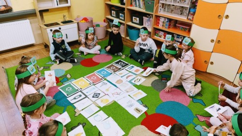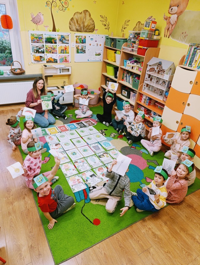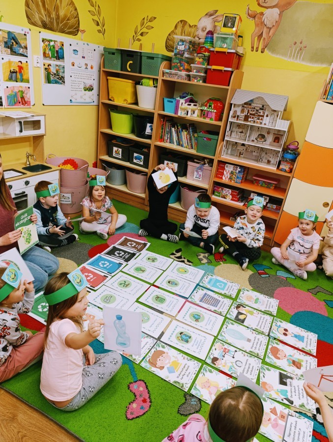 Działania edukacyjne w ramach realizacji 16 edycji konkursu "Szanuj energię, chroń klimat". Udział przedszkolaków z grupy "Krasnoludków" w: "stworzonym przez nauczyciela quizie ekologicznym na temat ochrony środowiska i klimatu, energii odnawialnej, poszanowania wody, gospodarki odpadami, gospodarki cyrkularnej, eko-transportu i elektromobilności".