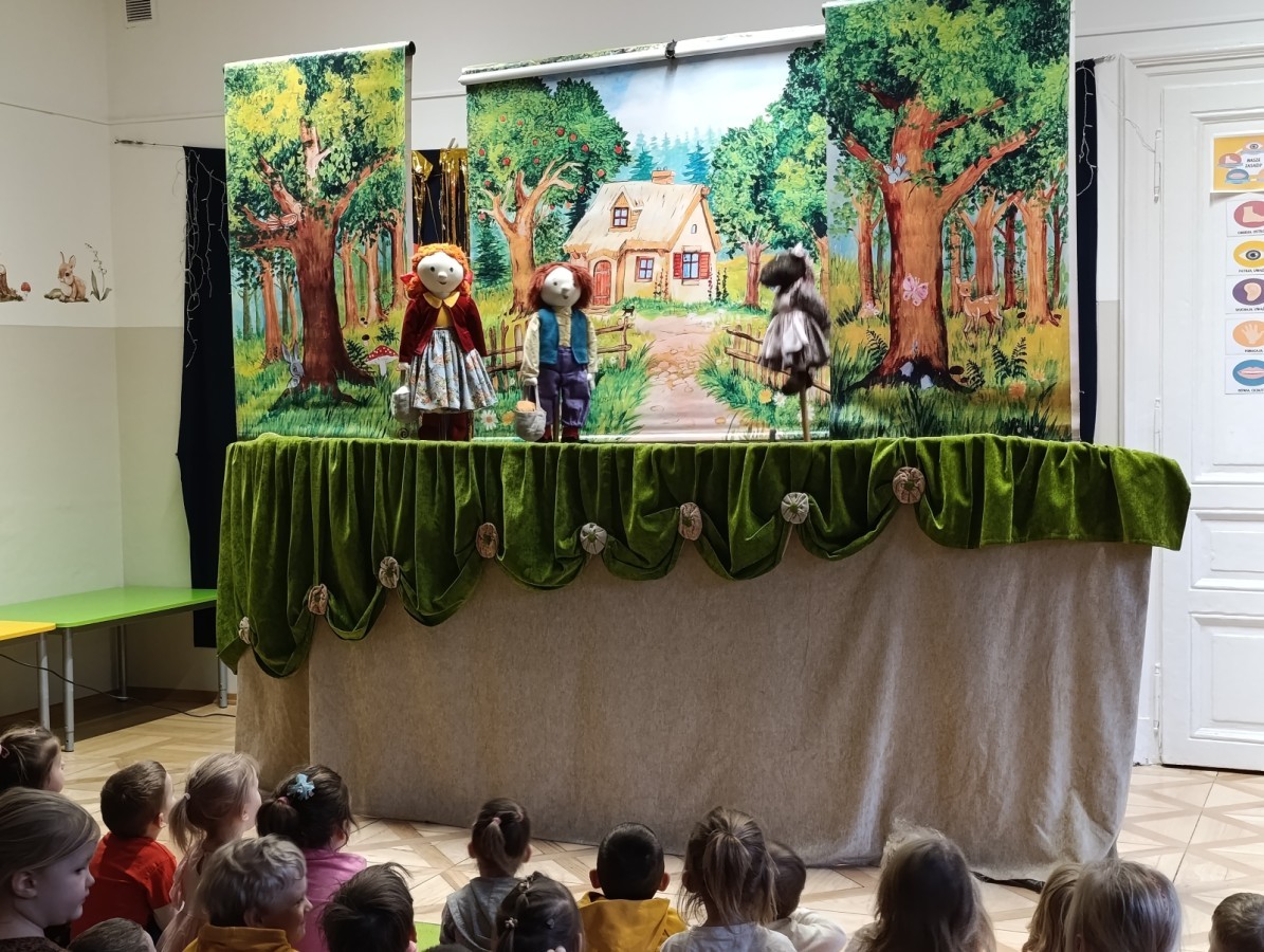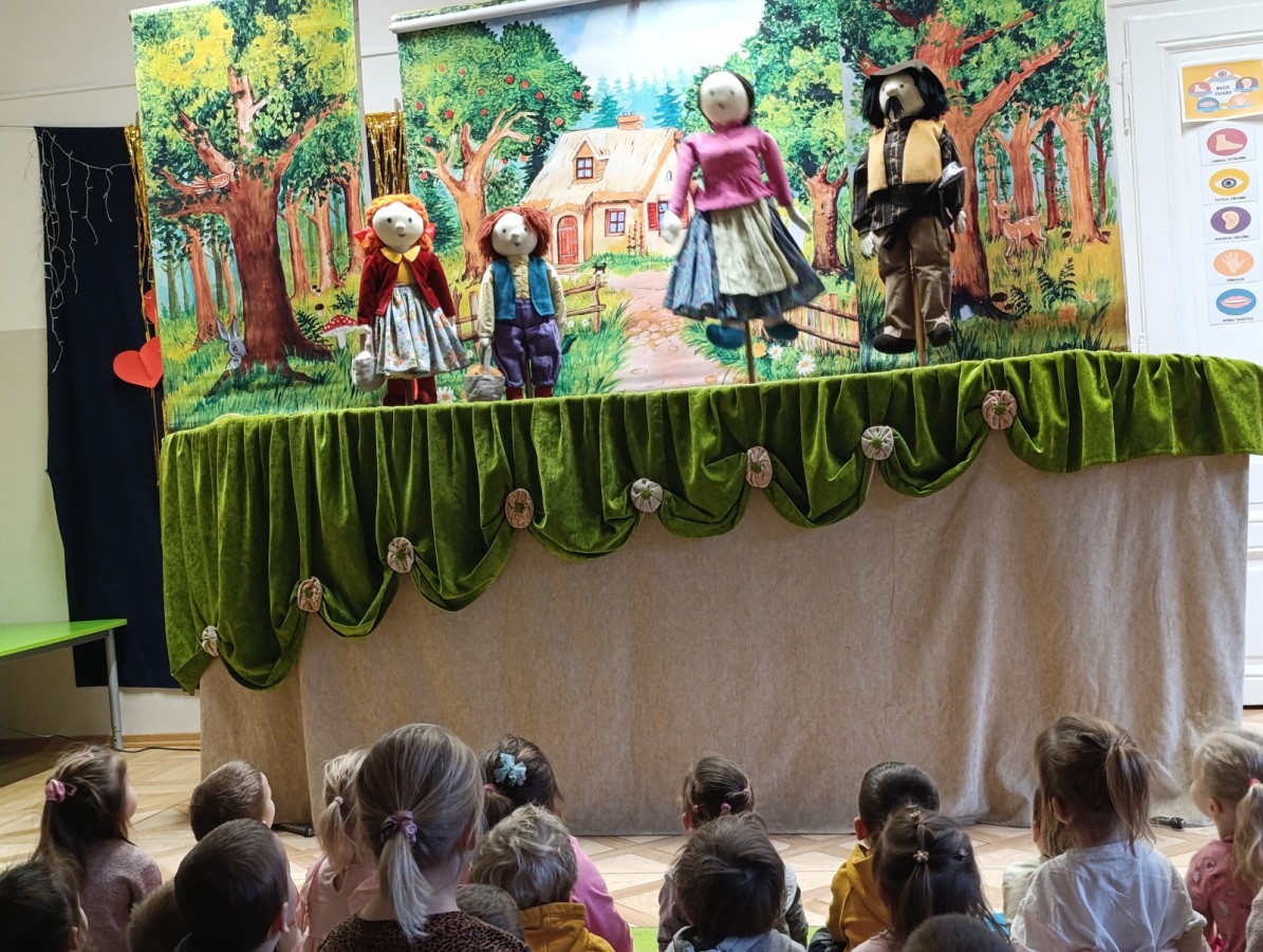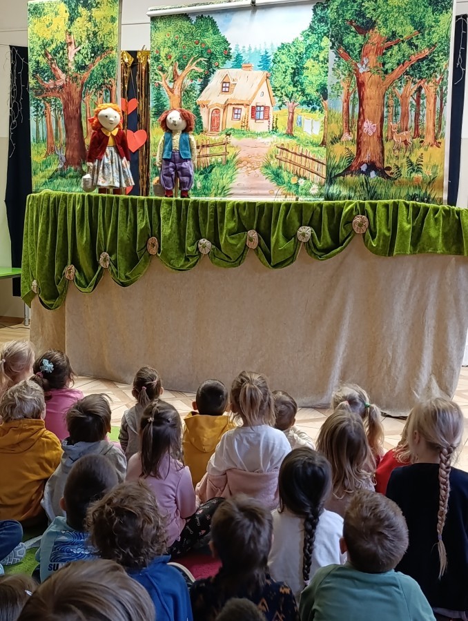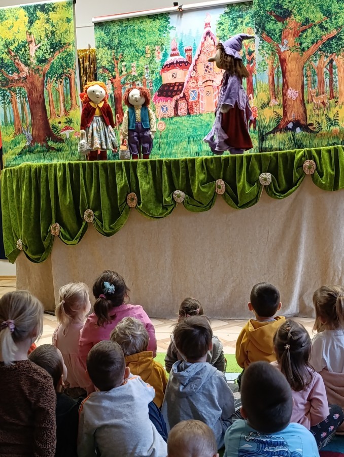W poniedziałek do naszego przedszkola przyjechał Teatr "Bajka" z przedstawieniem „Jaś i Małgosia”. Kolorowy spektakl bardzo spodobał się przedszkolakom i dostarczył im wielu radosnych emocji. Bohaterami przedstawienia były ręcznie i z wielką starannością wykonane lalki. Pięknie dobrane materiały, bogata kolorystyka, dopracowane stroje oraz wyrazista mimika lalek wzbudzały w dzieciach radość, zachwyt i nieustanne zainteresowanie, czyniąc spektakl jeszcze bardziej magicznym i wyjątkowym. 😊