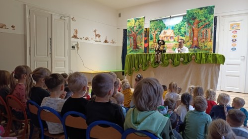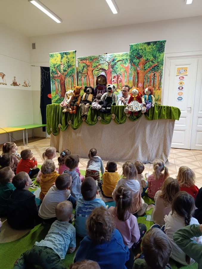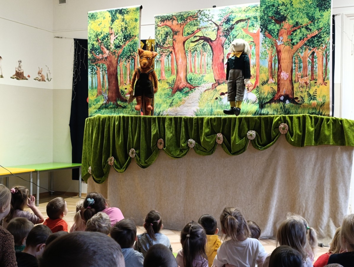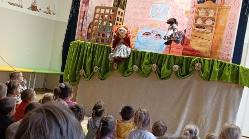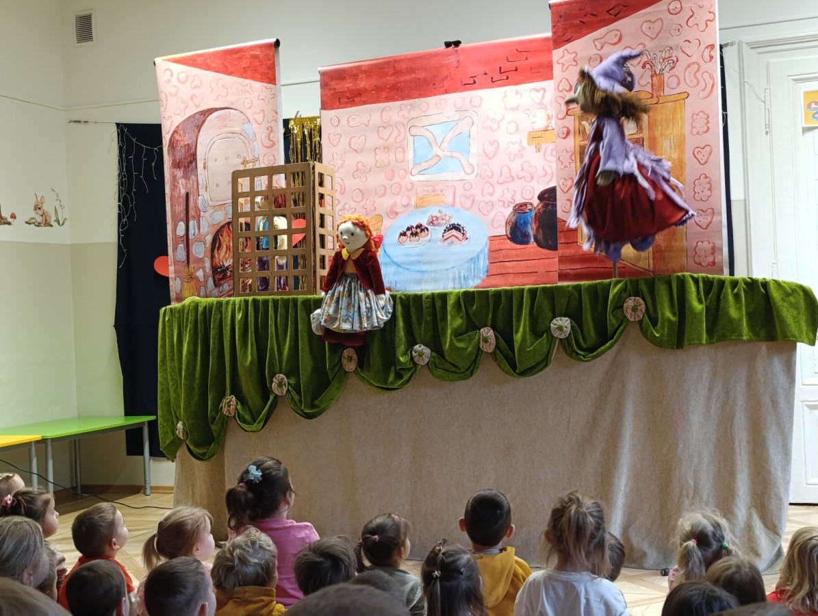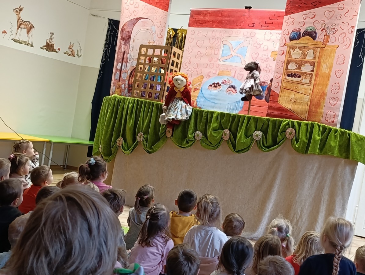 W poniedziałek do naszego przedszkola przyjechał Teatr "Bajka" z przedstawieniem „Jaś i Małgosia”. Kolorowy spektakl bardzo spodobał się przedszkolakom i dostarczył im wielu radosnych emocji. Bohaterami przedstawienia były ręcznie i z wielką starannością wykonane lalki. Pięknie dobrane materiały, bogata kolorystyka, dopracowane stroje oraz wyrazista mimika lalek wzbudzały w dzieciach radość, zachwyt i nieustanne zainteresowanie, czyniąc spektakl jeszcze bardziej magicznym i wyjątkowym. 😊