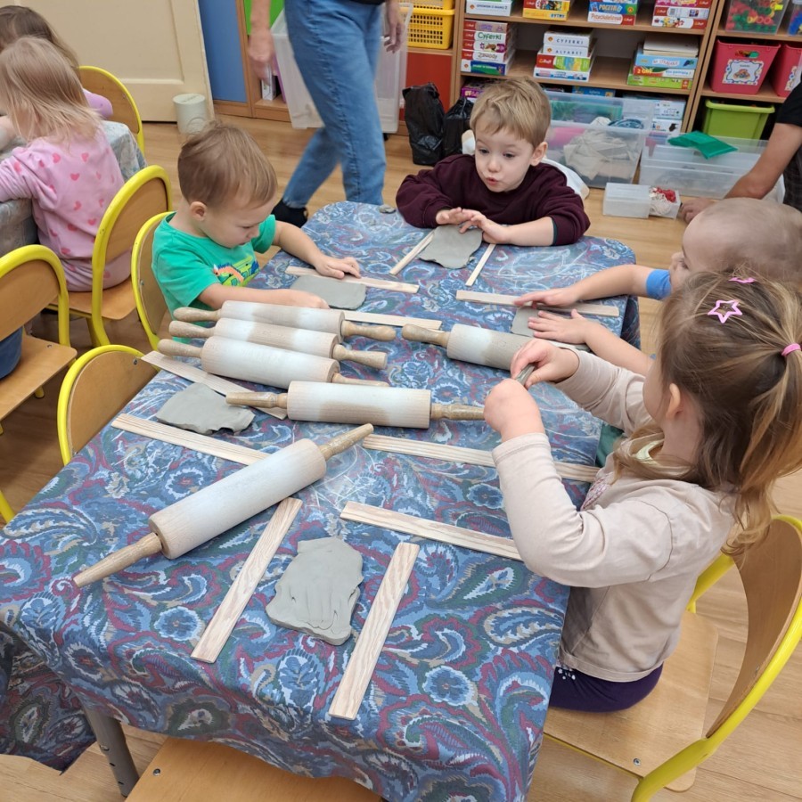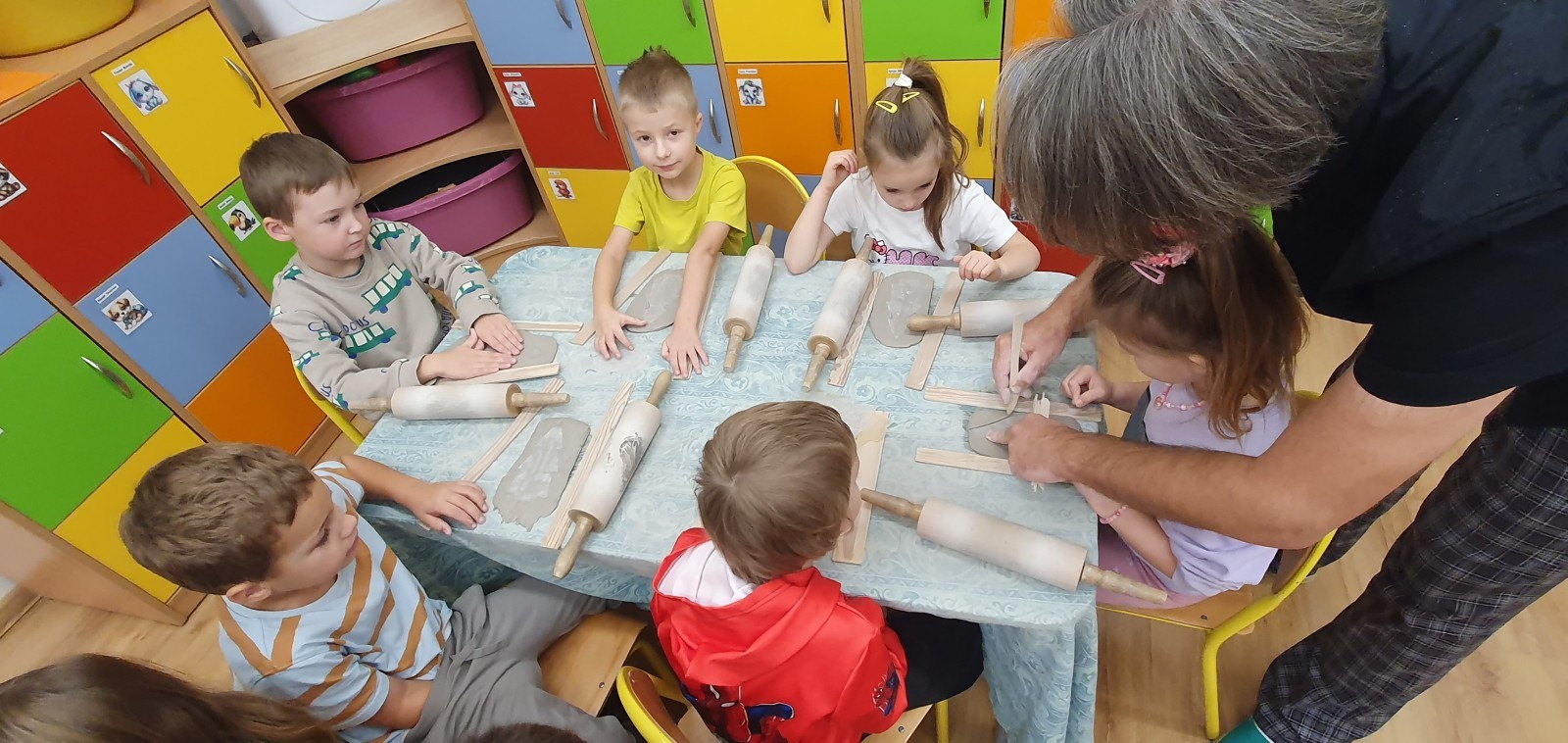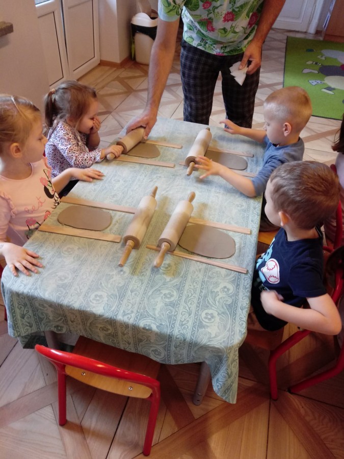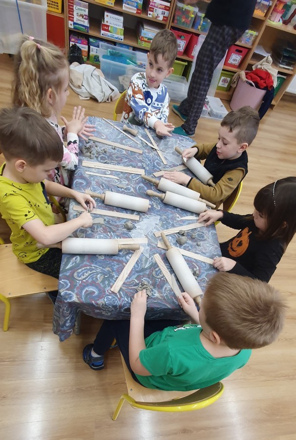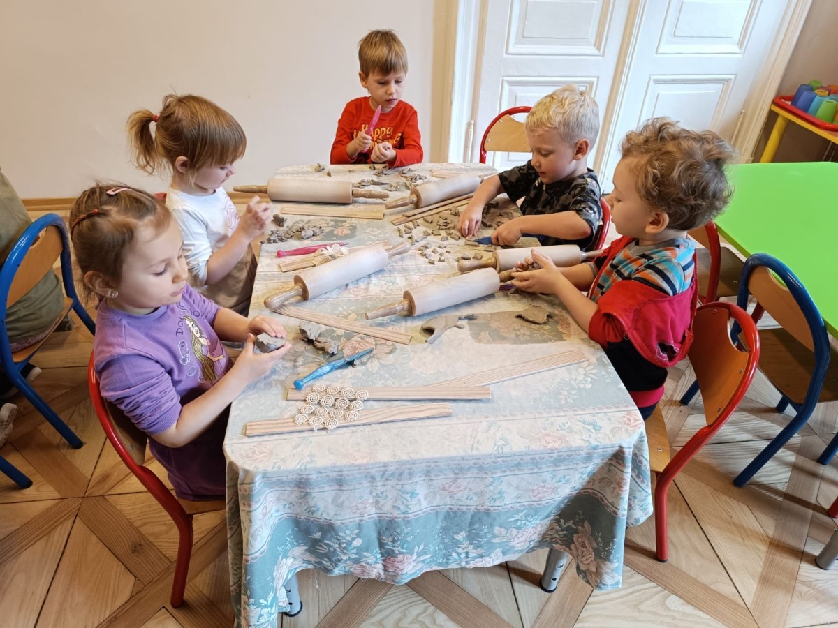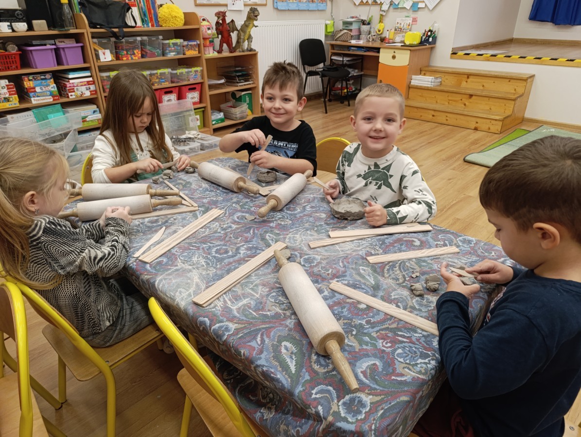 27 i 28 października odbyły się w naszym Przedszkolu wyjątkowe warsztaty ceramiczne, podczas których dzieci mogły odkryć w sobie prawdziwych artystów! Zajęcia poprowadzili wspaniali instruktorzy, którzy w ciekawy, relaksacyjny sposób wprowadzili przedszkolaki w świat gliny. Dzieci z wielkim zaangażowaniem ugniatały, wałkowały i lepiły glinę, rozwijając przy tym sprawność manualną, wyobraźnię i cierpliwość. Po zakończeniu lepienia prace zostały odłożone do wyschnięcia. Zostaną później wypalone w piecu ceramicznym, a następnie ozdobione i pomalowane przez dzieci. Warsztaty sprawiły przedszkolakom ogromną radość — towarzyszył im uśmiech, ciekawość i duma z własnoręcznie wykonanych prac. Była to doskonała okazja do rozwijania kreatywności i wrażliwości artystycznej.