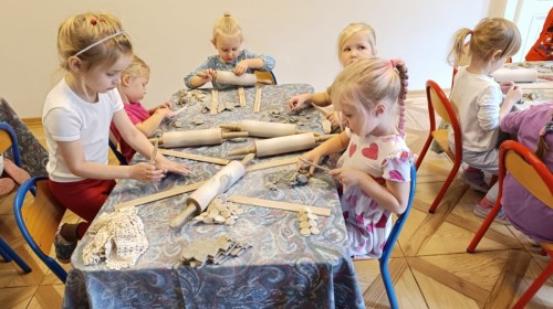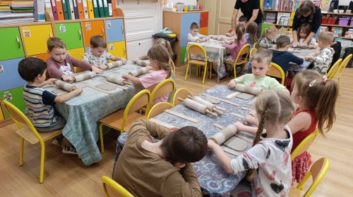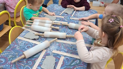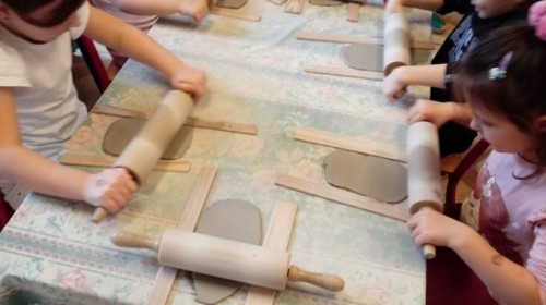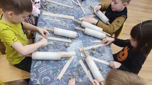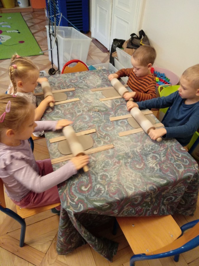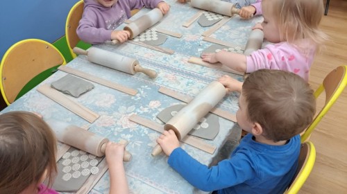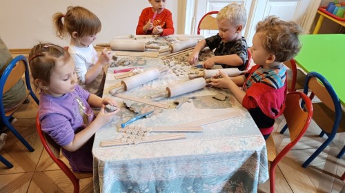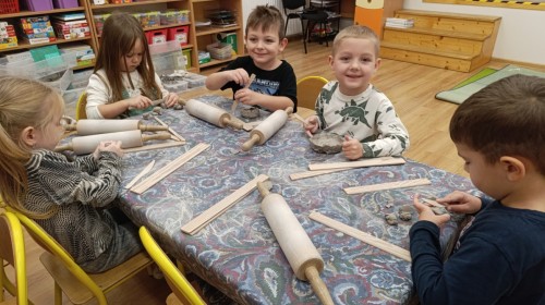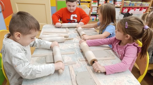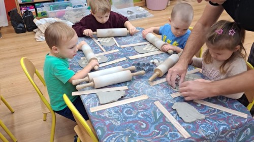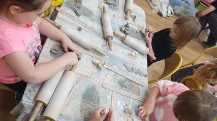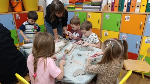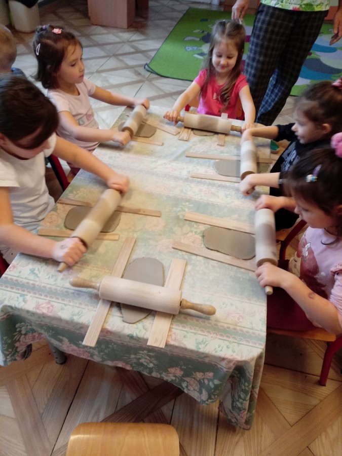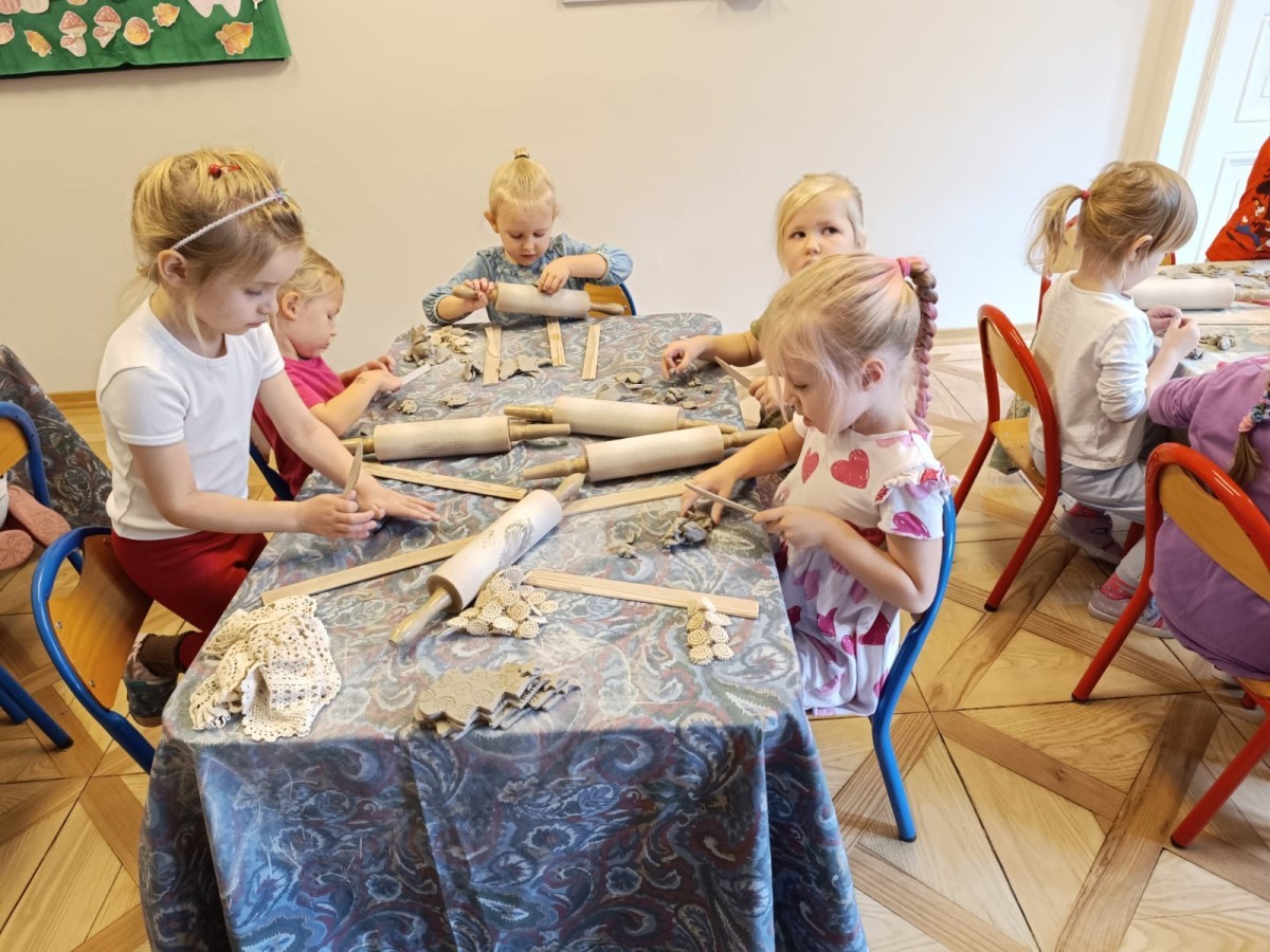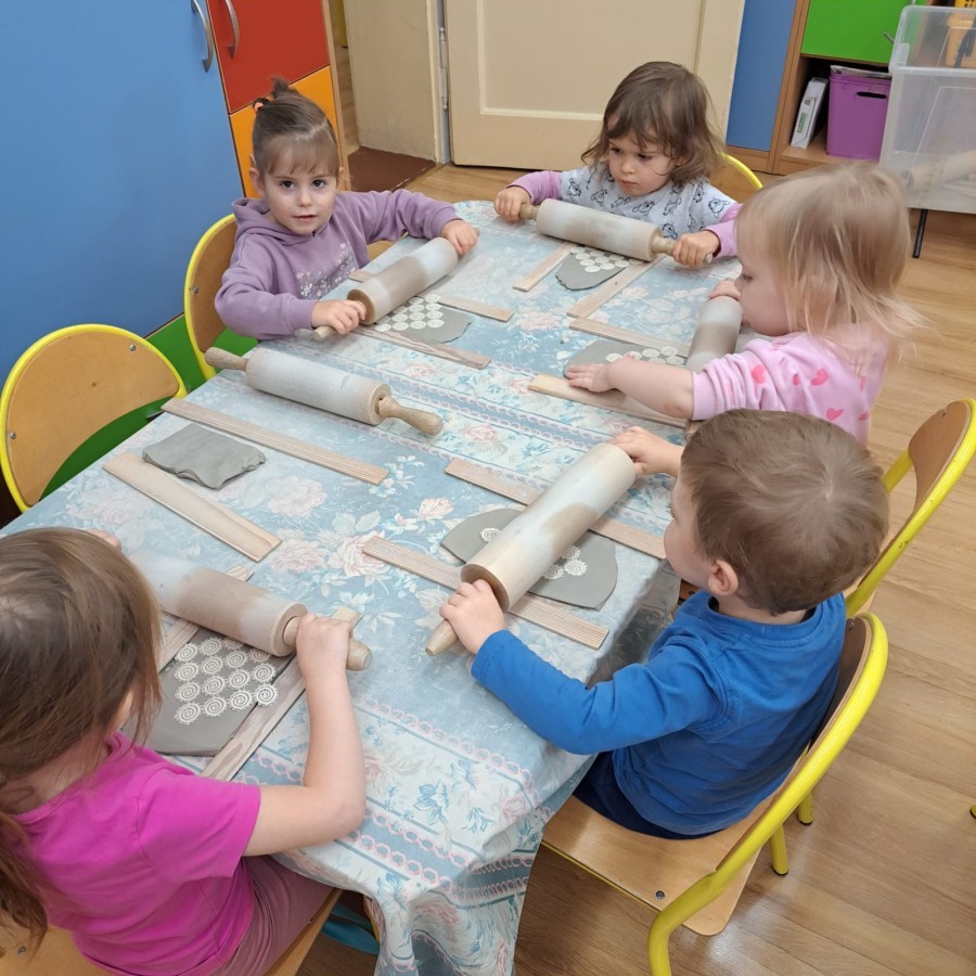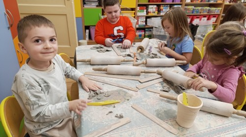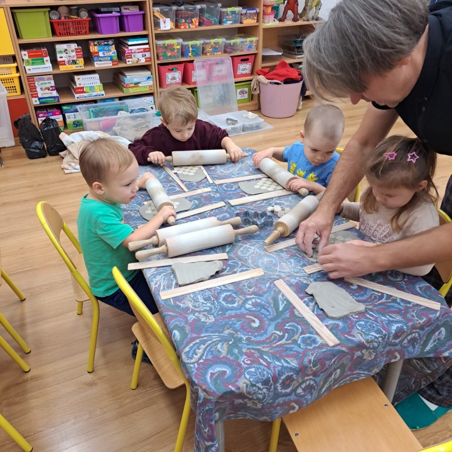 27 i 28 października odbyły się w naszym Przedszkolu wyjątkowe warsztaty ceramiczne, podczas których dzieci mogły odkryć w sobie prawdziwych artystów! Zajęcia poprowadzili wspaniali instruktorzy, którzy w ciekawy, relaksacyjny sposób wprowadzili przedszkolaki w świat gliny. Dzieci z wielkim zaangażowaniem ugniatały, wałkowały i lepiły glinę, rozwijając przy tym sprawność manualną, wyobraźnię i cierpliwość. Po zakończeniu lepienia prace zostały odłożone do wyschnięcia. Zostaną później wypalone w piecu ceramicznym, a następnie ozdobione i pomalowane przez dzieci. Warsztaty sprawiły przedszkolakom ogromną radość — towarzyszył im uśmiech, ciekawość i duma z własnoręcznie wykonanych prac. Była to doskonała okazja do rozwijania kreatywności i wrażliwości artystycznej.