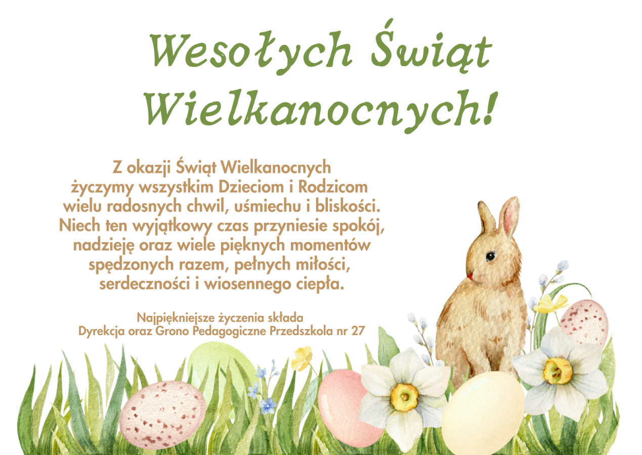 Najpiękniejsze życzenia składa Dyrekcja oraz Grono Pedagogiczne Przedszkola nr 27