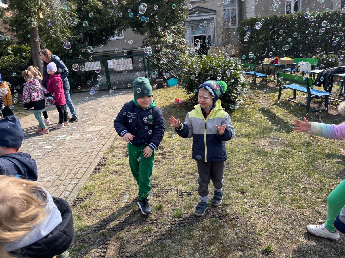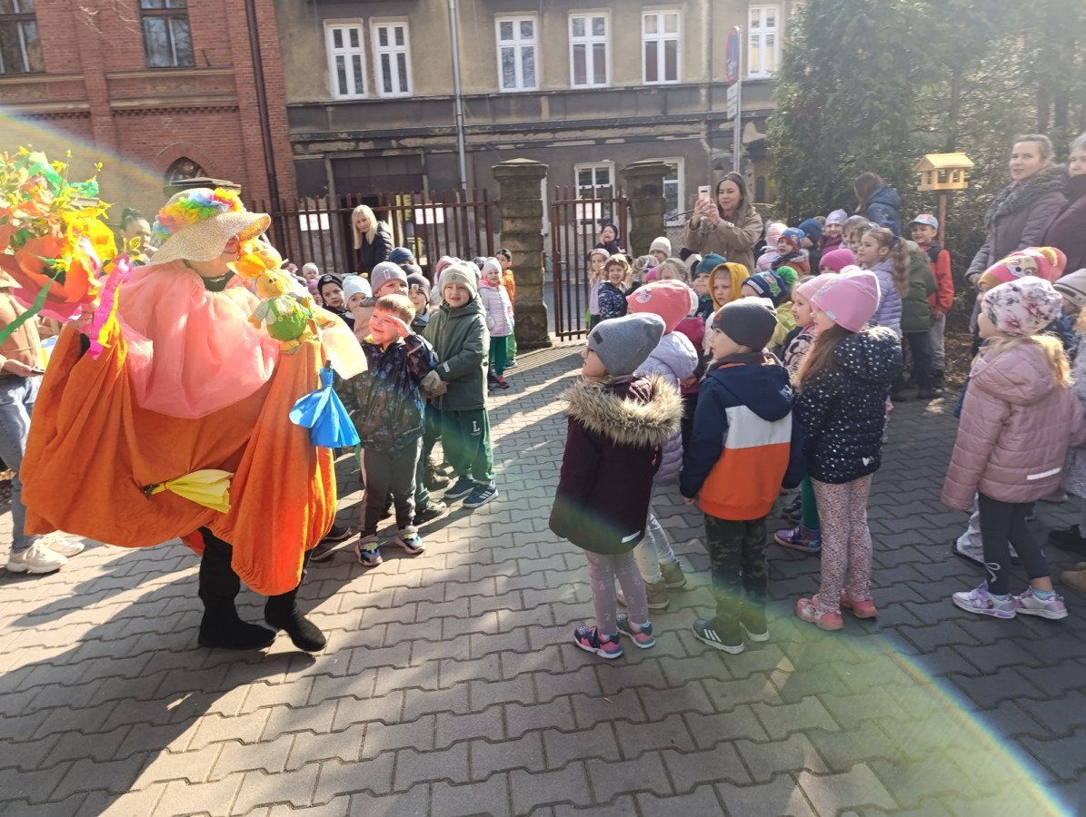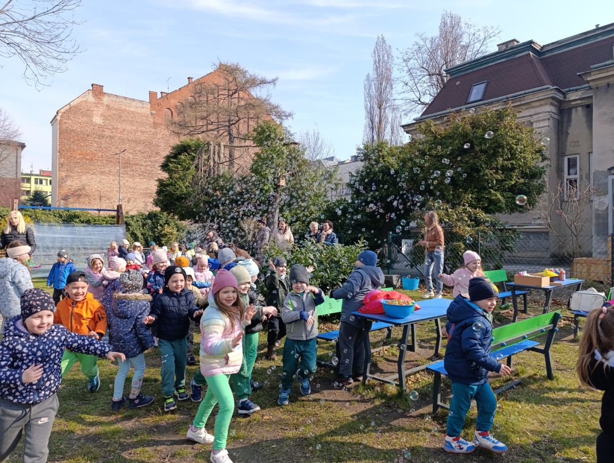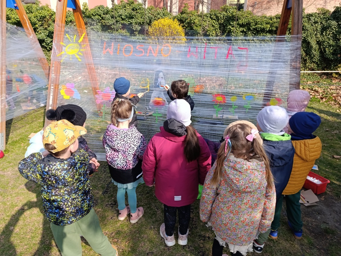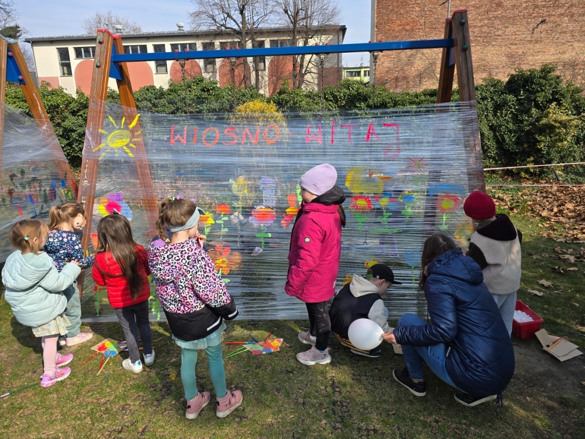 W piątek w naszym przedszkolu odbyło się wyjątkowe, pełne radości wydarzenie – pożegnaliśmy Panią Zimę i z wielką radością powitaliśmy Panią Wiosnę w naszym przedszkolnym ogrodzie!:) Były kolorowe bańki mydlane, wspólne zabawy z chustą animacyjną oraz radosne harce z balonami. Ogromną frajdę sprawiło dzieciom malowanie farbami na folii, które pozwoliło im wyrazić swoją kreatywność i stworzyć prawdziwie wiosenne dzieła sztuki. W trakcie zabawy pojawiły się również słodkie poczęstunki oraz wspólne tańce przy wiosennych piosenkach, które wprowadziły wszystkich w pogodny, pełen energii, WIOSENNY nastrój!:) To był dzień pełen uśmiechu, zabawy i pierwszych wiosennych promieni słońca. Witamy Cię, Wiosno - Najserdeczniej!:)