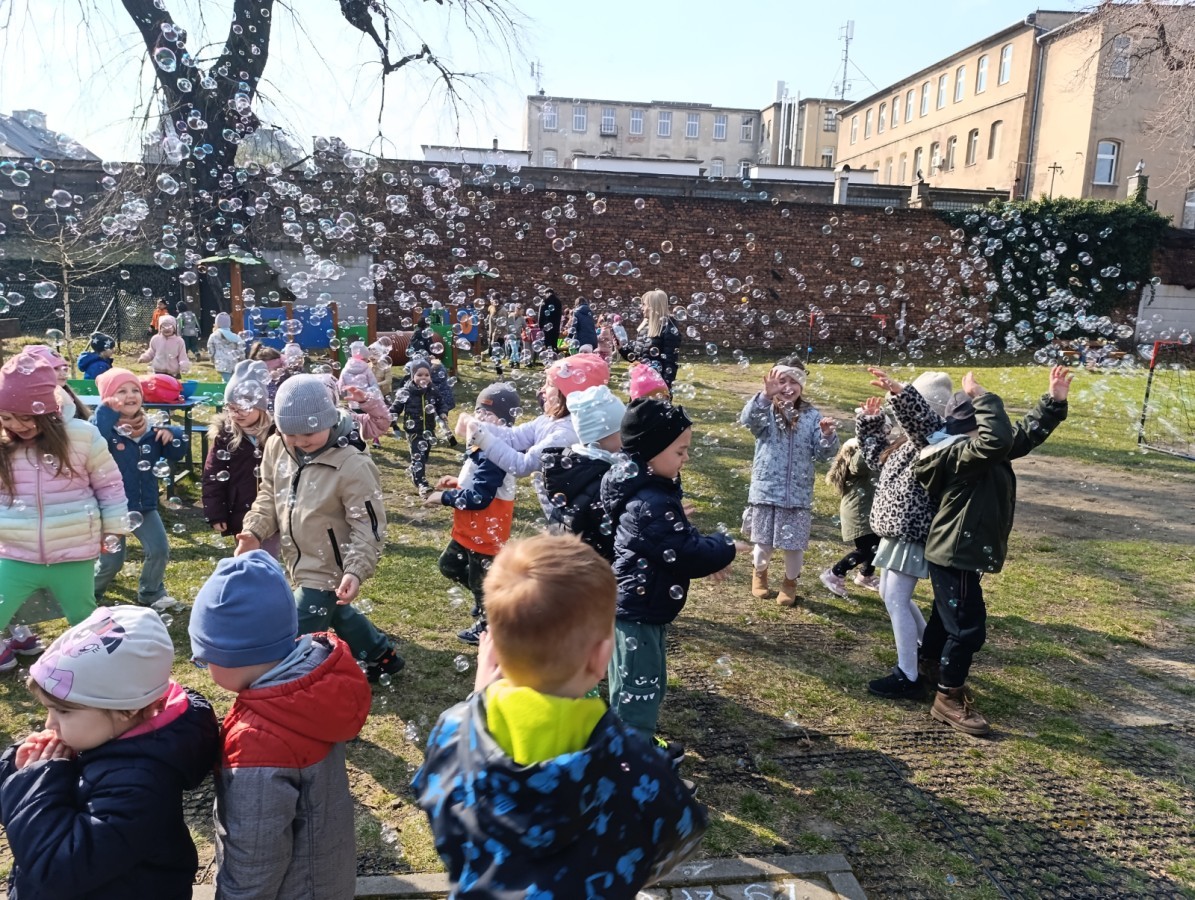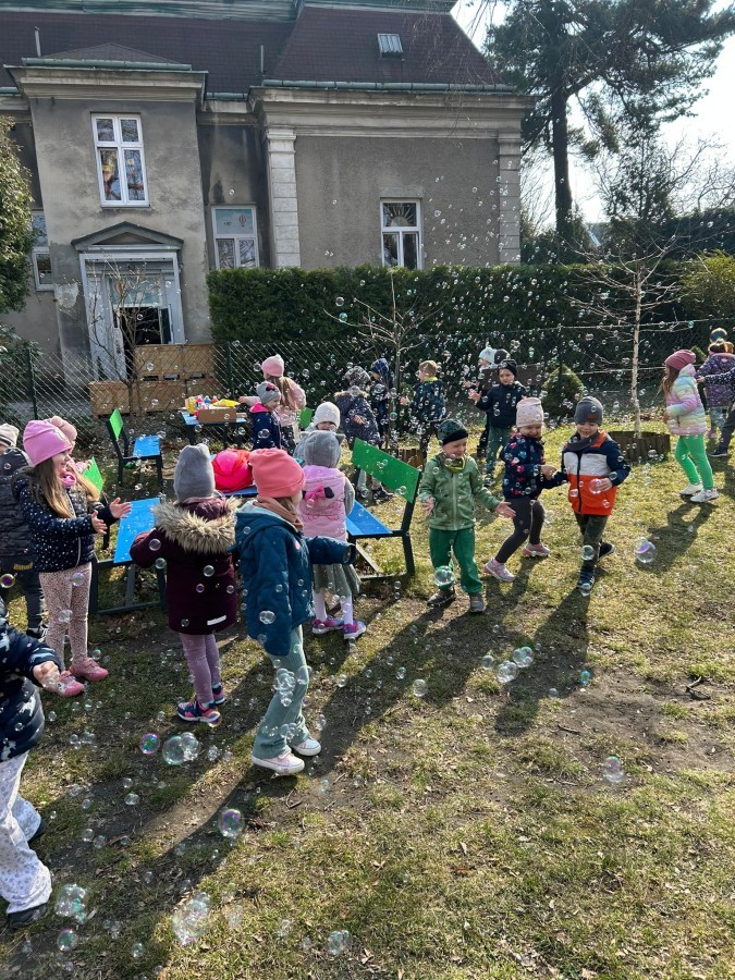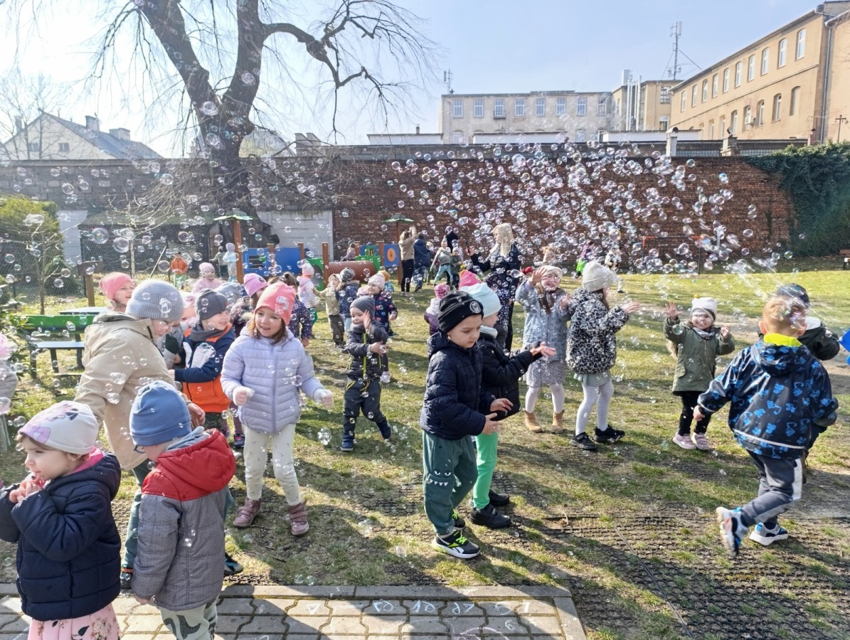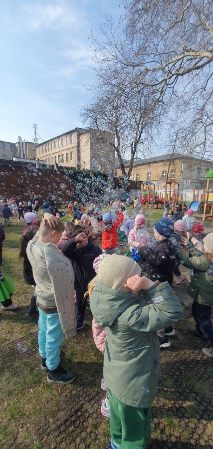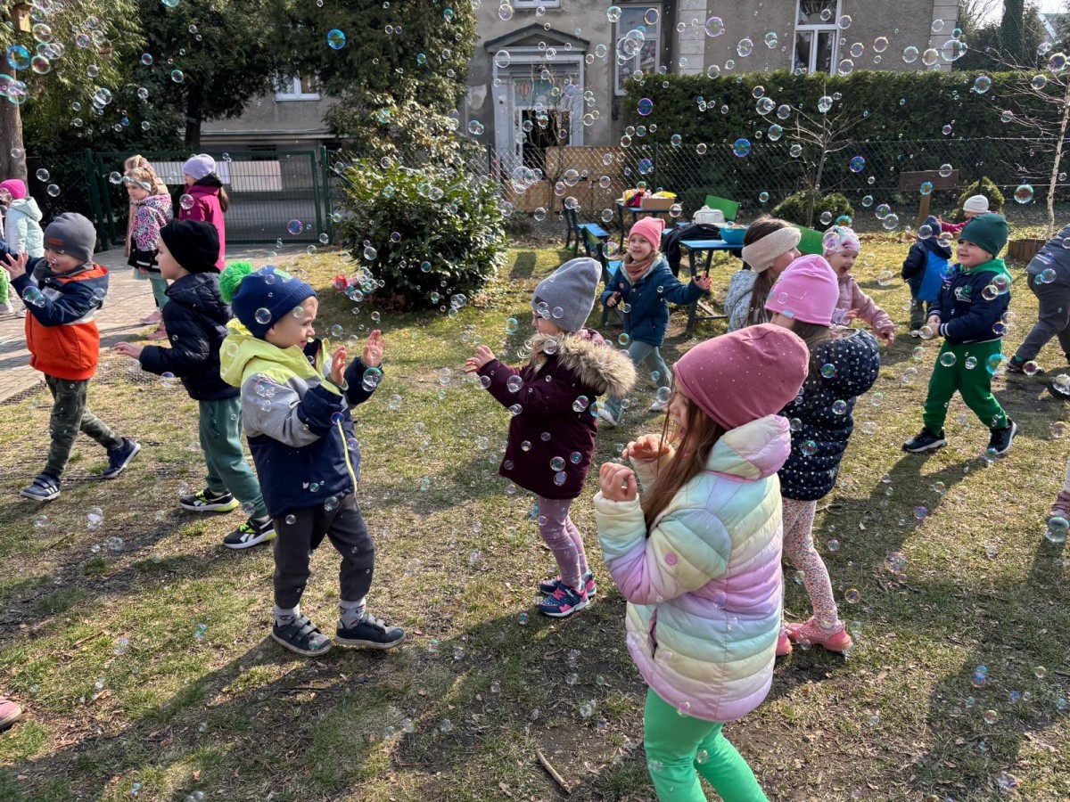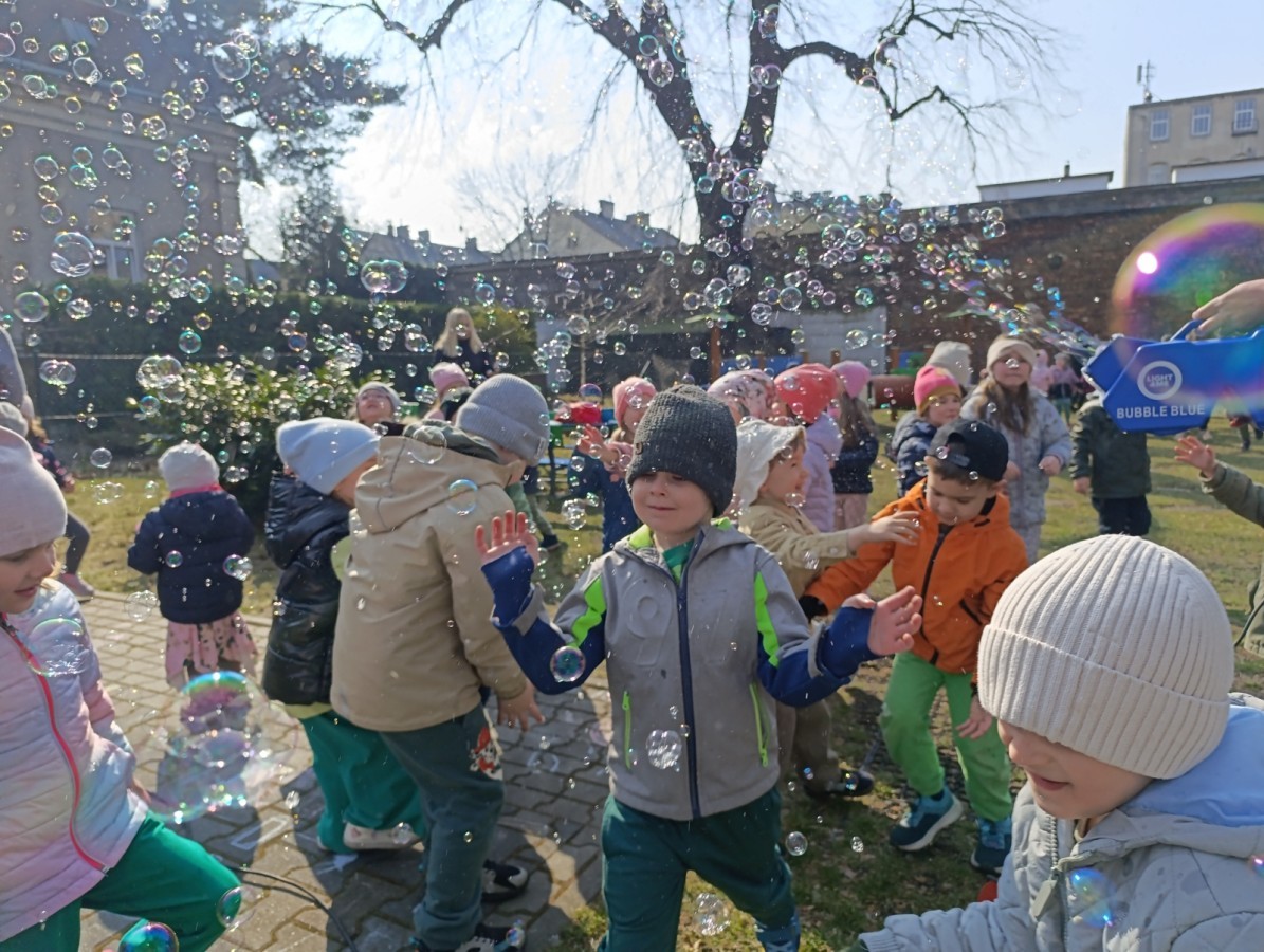 W piątek w naszym przedszkolu odbyło się wyjątkowe, pełne radości wydarzenie – pożegnaliśmy Panią Zimę i z wielką radością powitaliśmy Panią Wiosnę w naszym przedszkolnym ogrodzie!:) Były kolorowe bańki mydlane, wspólne zabawy z chustą animacyjną oraz radosne harce z balonami. Ogromną frajdę sprawiło dzieciom malowanie farbami na folii, które pozwoliło im wyrazić swoją kreatywność i stworzyć prawdziwie wiosenne dzieła sztuki. W trakcie zabawy pojawiły się również słodkie poczęstunki oraz wspólne tańce przy wiosennych piosenkach, które wprowadziły wszystkich w pogodny, pełen energii, WIOSENNY nastrój!:) To był dzień pełen uśmiechu, zabawy i pierwszych wiosennych promieni słońca. Witamy Cię, Wiosno - Najserdeczniej!:)