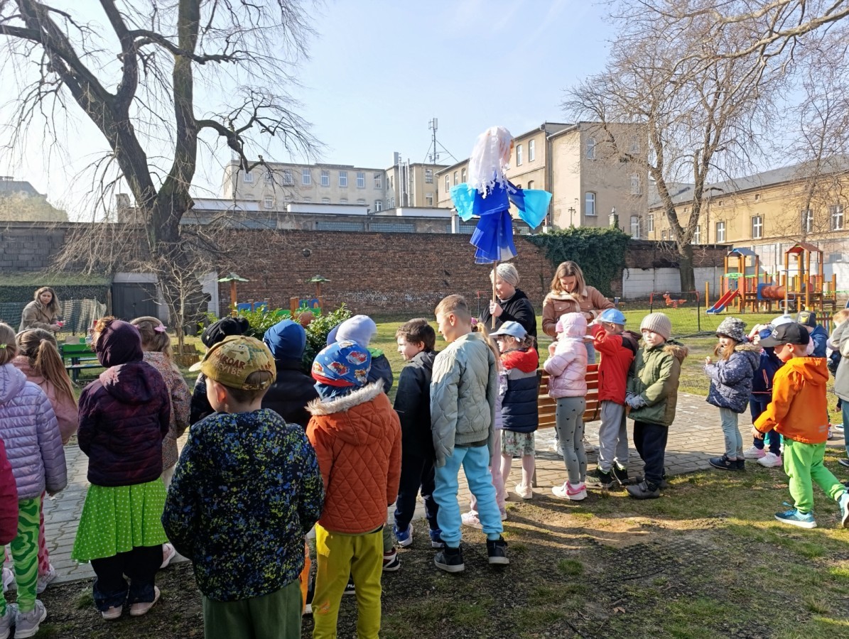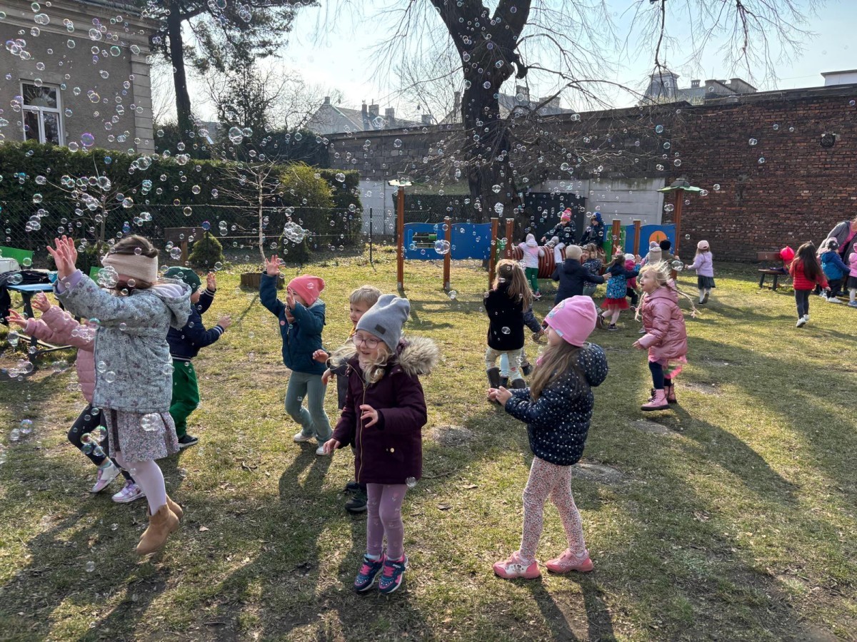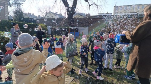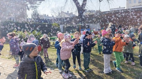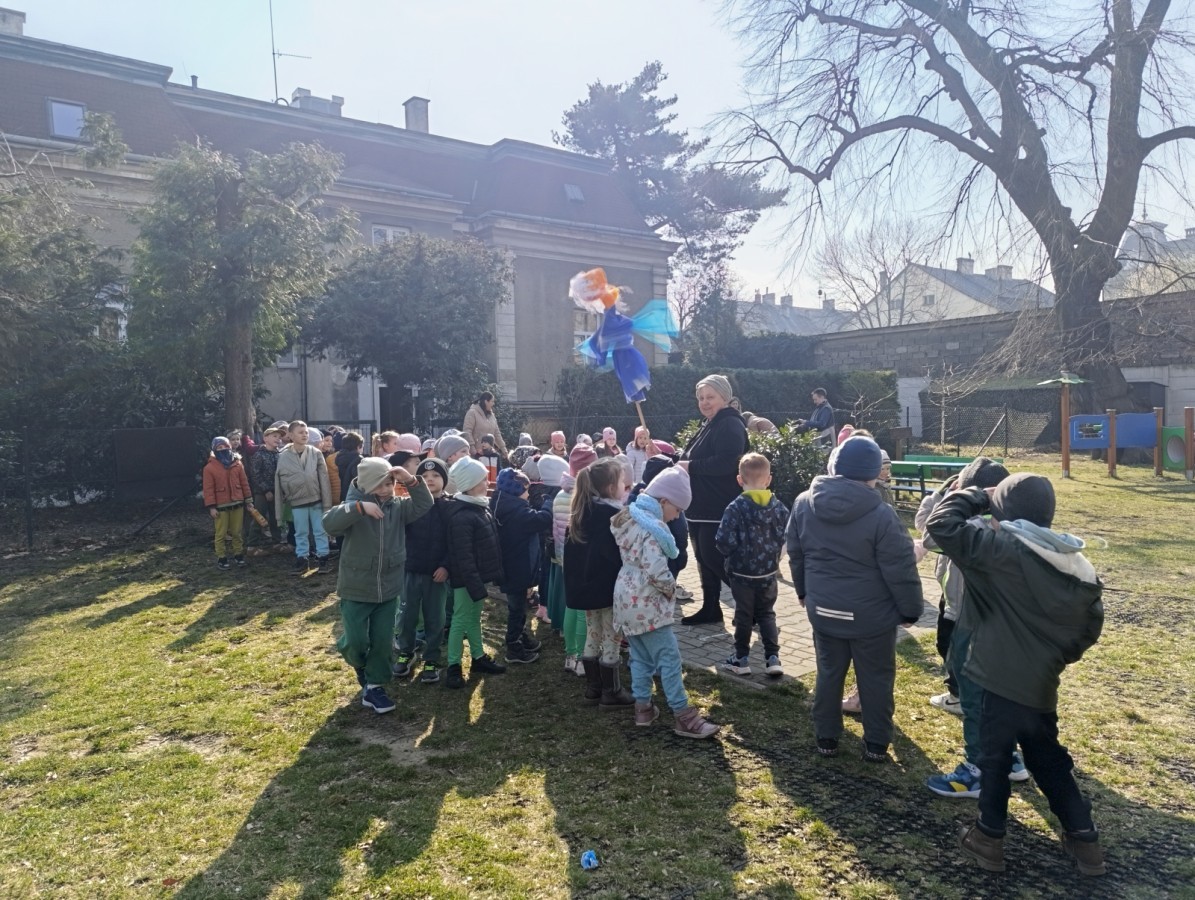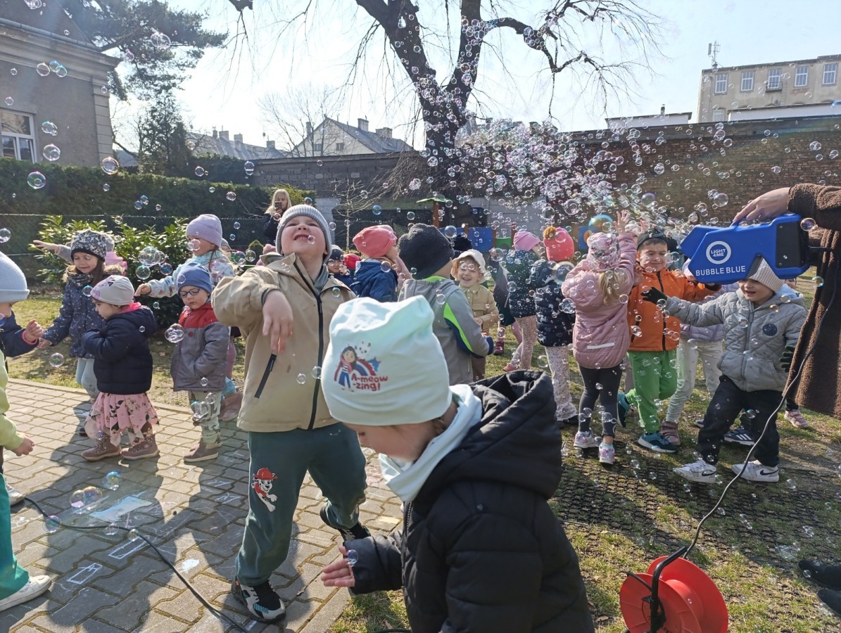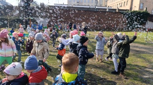 W piątek w naszym przedszkolu odbyło się wyjątkowe, pełne radości wydarzenie – pożegnaliśmy Panią Zimę i z wielką radością powitaliśmy Panią Wiosnę w naszym przedszkolnym ogrodzie!:) Były kolorowe bańki mydlane, wspólne zabawy z chustą animacyjną oraz radosne harce z balonami. Ogromną frajdę sprawiło dzieciom malowanie farbami na folii, które pozwoliło im wyrazić swoją kreatywność i stworzyć prawdziwie wiosenne dzieła sztuki. W trakcie zabawy pojawiły się również słodkie poczęstunki oraz wspólne tańce przy wiosennych piosenkach, które wprowadziły wszystkich w pogodny, pełen energii, WIOSENNY nastrój!:) To był dzień pełen uśmiechu, zabawy i pierwszych wiosennych promieni słońca. Witamy Cię, Wiosno - Najserdeczniej!:)