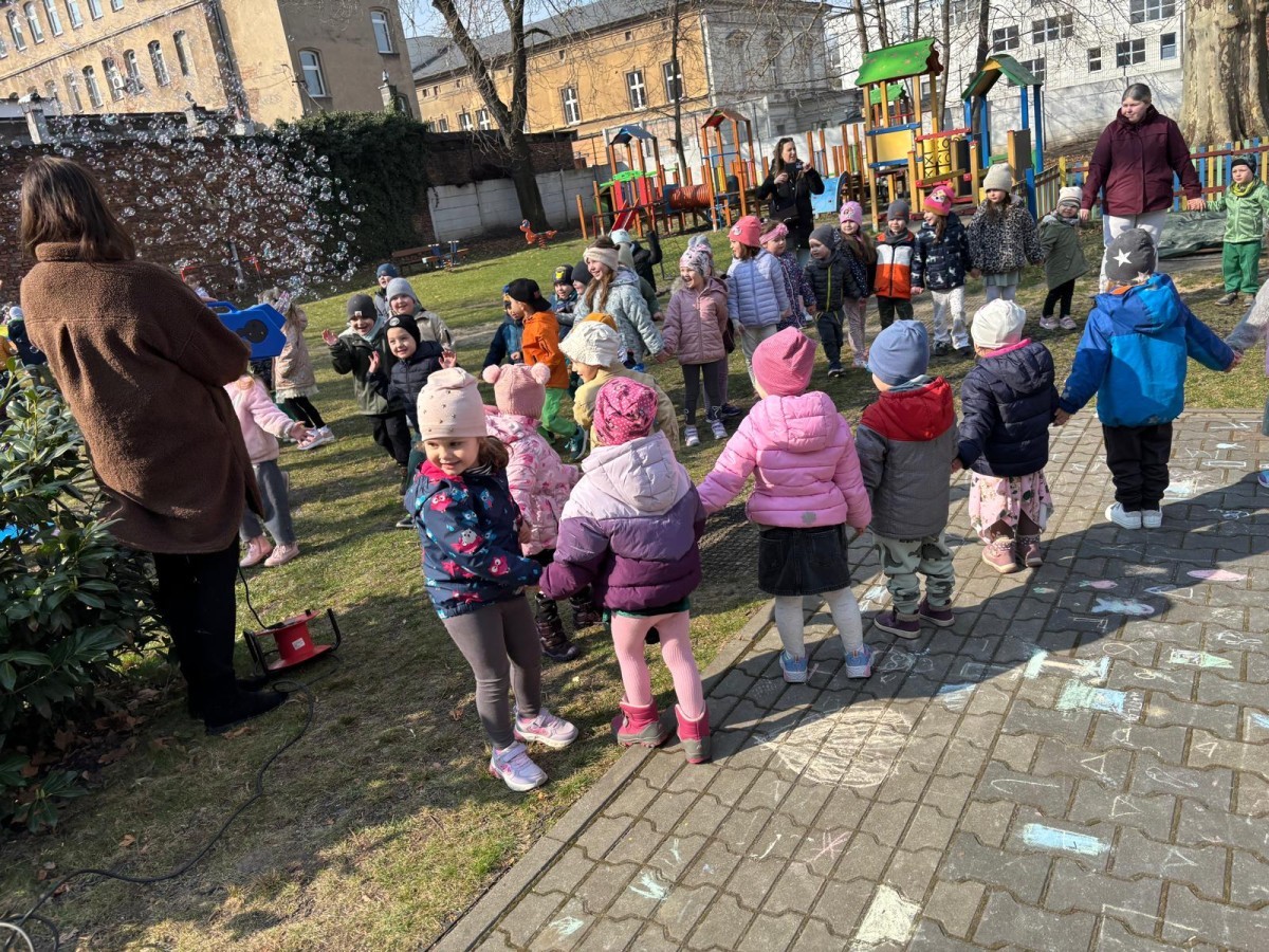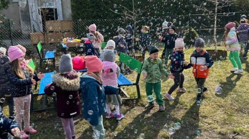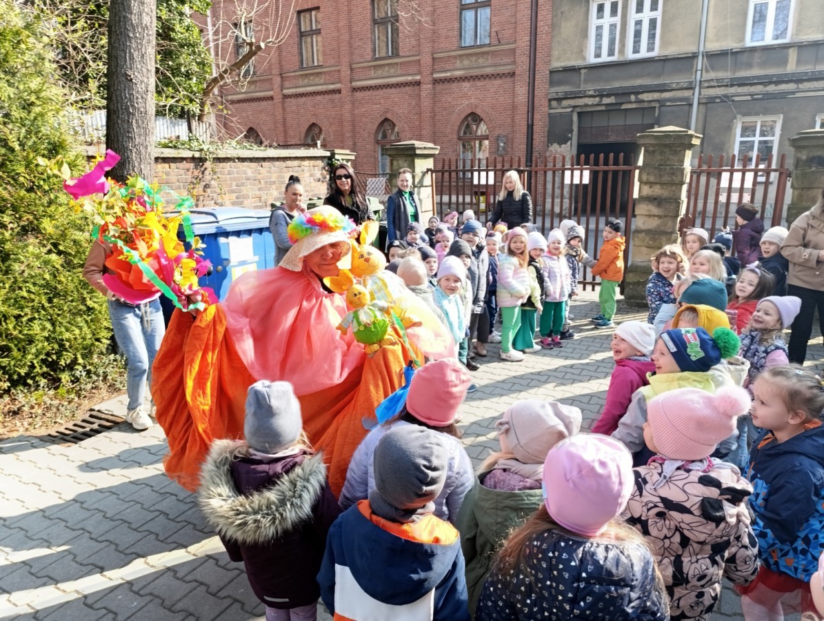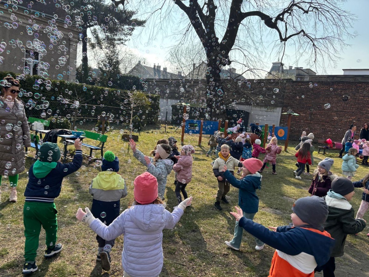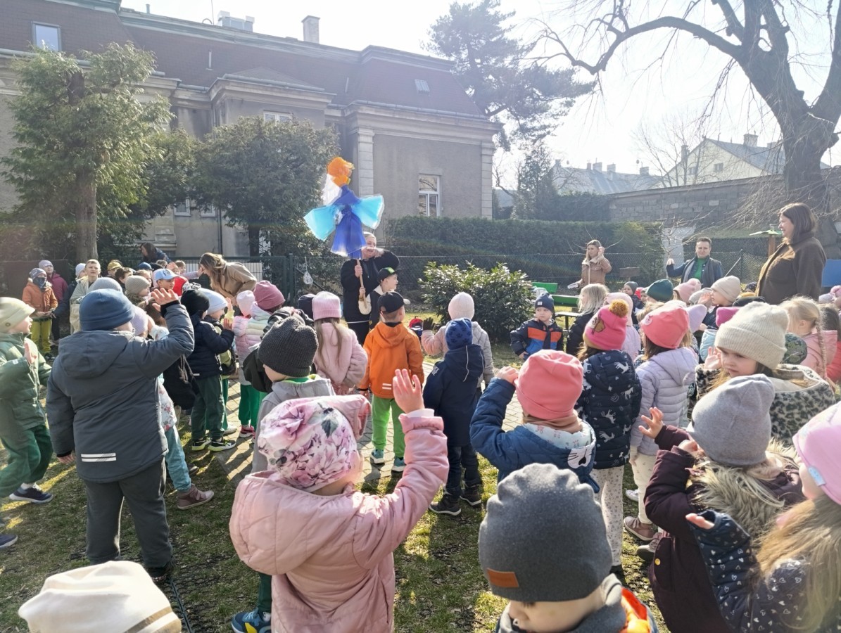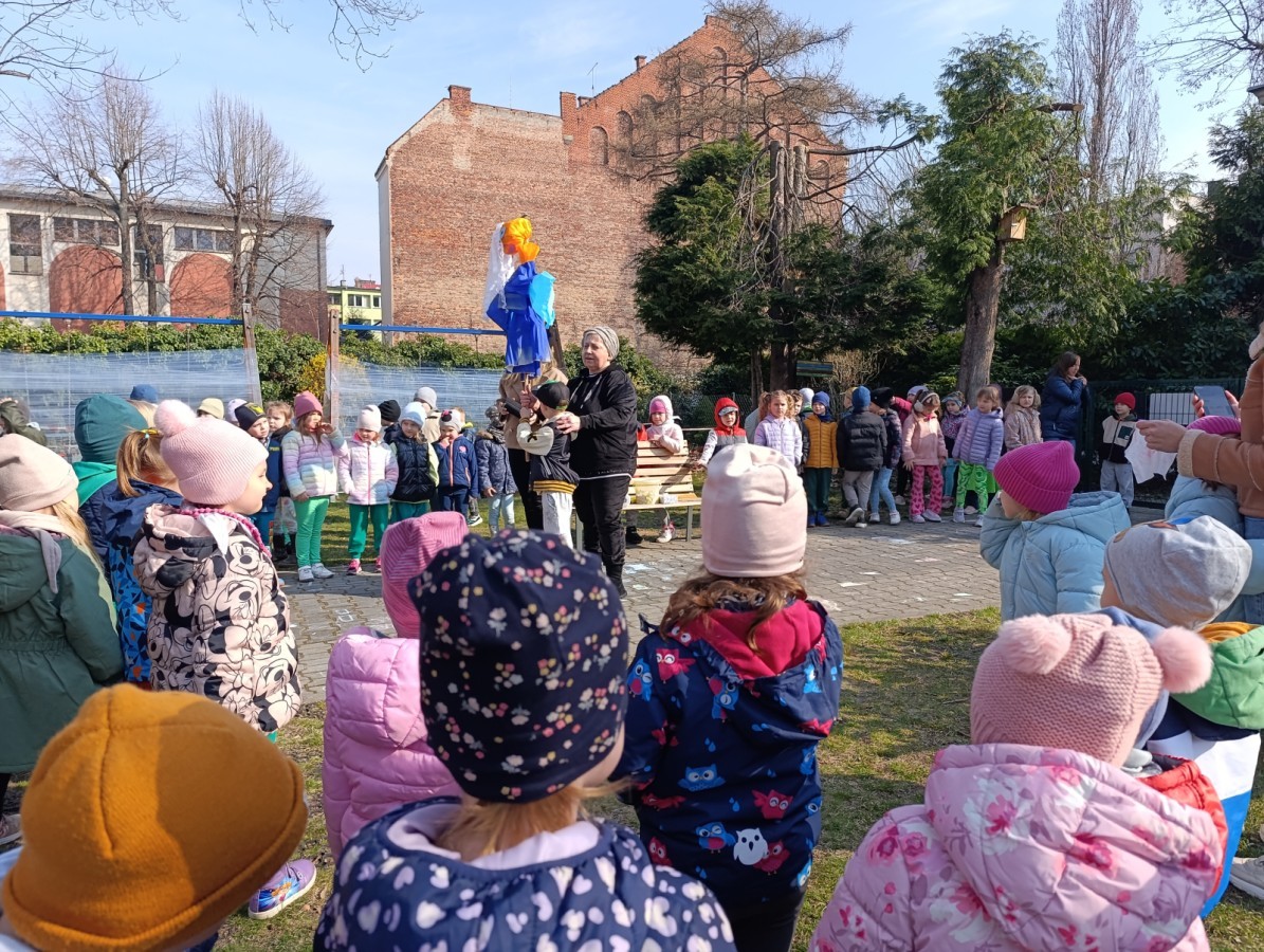W piątek w naszym przedszkolu odbyło się wyjątkowe, pełne radości wydarzenie – pożegnaliśmy Panią Zimę i z wielką radością powitaliśmy Panią Wiosnę w naszym przedszkolnym ogrodzie!:) Były kolorowe bańki mydlane, wspólne zabawy z chustą animacyjną oraz radosne harce z balonami. Ogromną frajdę sprawiło dzieciom malowanie farbami na folii, które pozwoliło im wyrazić swoją kreatywność i stworzyć prawdziwie wiosenne dzieła sztuki. W trakcie zabawy pojawiły się również słodkie poczęstunki oraz wspólne tańce przy wiosennych piosenkach, które wprowadziły wszystkich w pogodny, pełen energii, WIOSENNY nastrój!:) To był dzień pełen uśmiechu, zabawy i pierwszych wiosennych promieni słońca. Witamy Cię, Wiosno - Najserdeczniej!:)