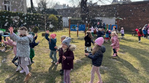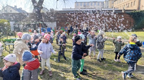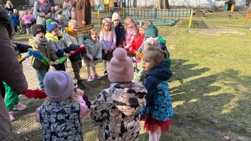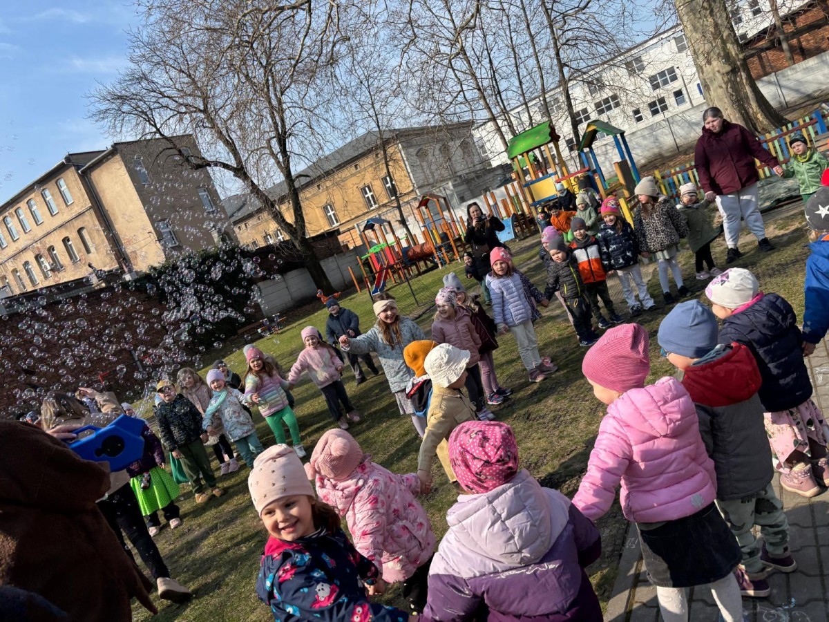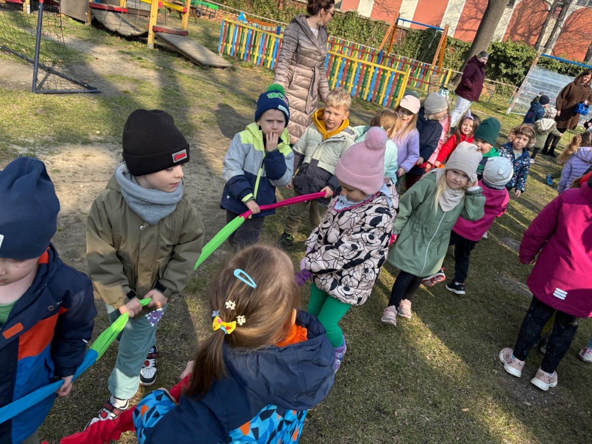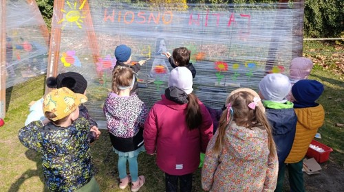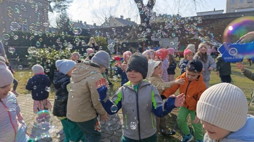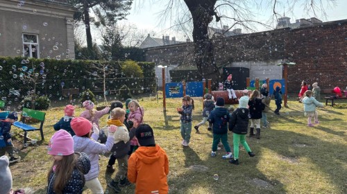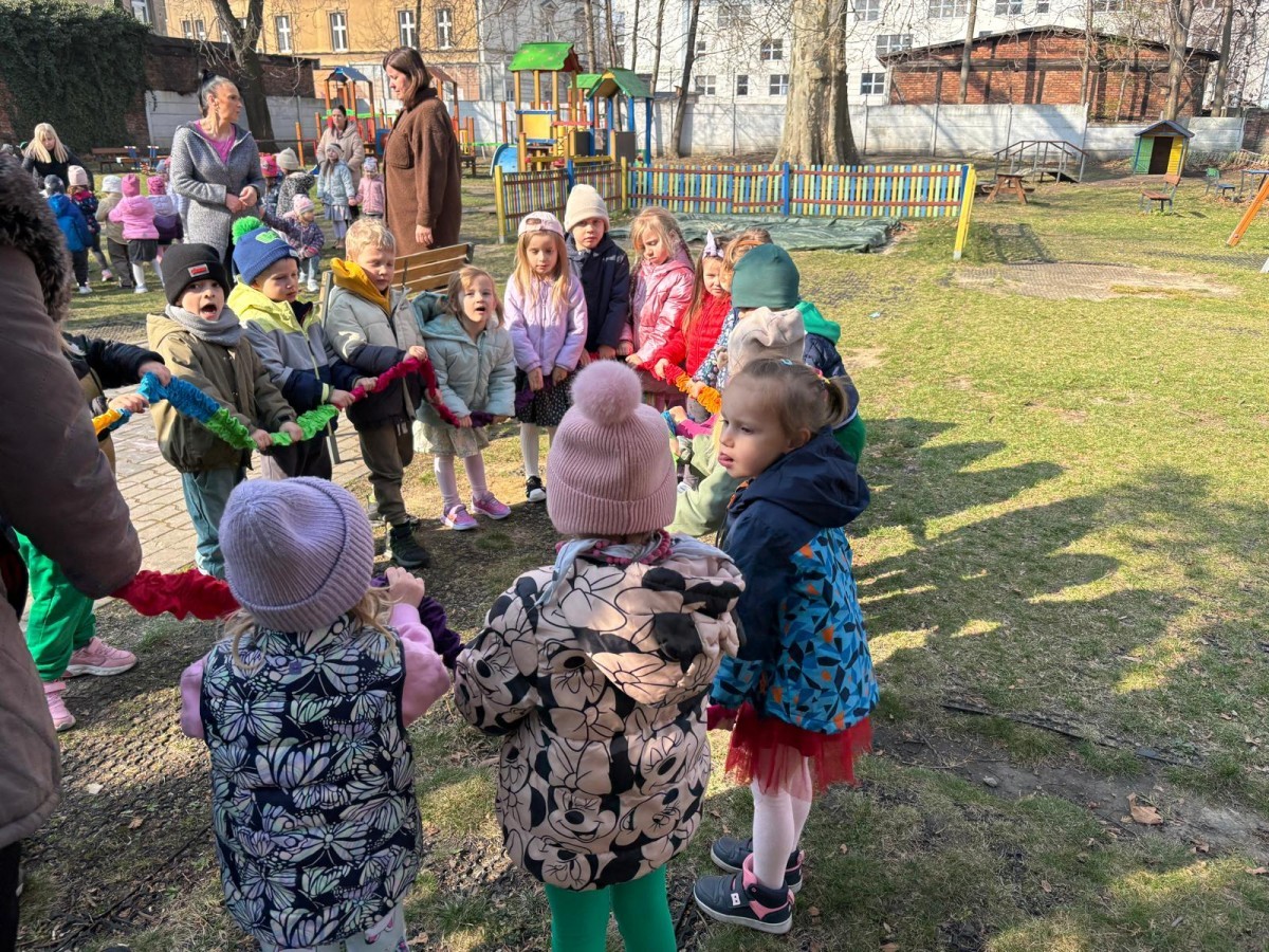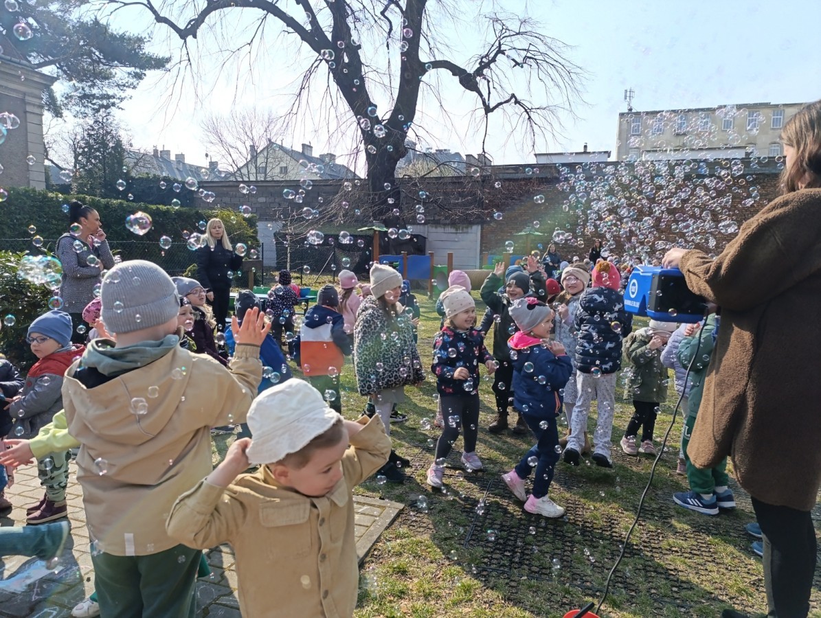 W piątek w naszym przedszkolu odbyło się wyjątkowe, pełne radości wydarzenie – pożegnaliśmy Panią Zimę i z wielką radością powitaliśmy Panią Wiosnę w naszym przedszkolnym ogrodzie!:) Były kolorowe bańki mydlane, wspólne zabawy z chustą animacyjną oraz radosne harce z balonami. Ogromną frajdę sprawiło dzieciom malowanie farbami na folii, które pozwoliło im wyrazić swoją kreatywność i stworzyć prawdziwie wiosenne dzieła sztuki. W trakcie zabawy pojawiły się również słodkie poczęstunki oraz wspólne tańce przy wiosennych piosenkach, które wprowadziły wszystkich w pogodny, pełen energii, WIOSENNY nastrój!:) To był dzień pełen uśmiechu, zabawy i pierwszych wiosennych promieni słońca. Witamy Cię, Wiosno - Najserdeczniej!:)