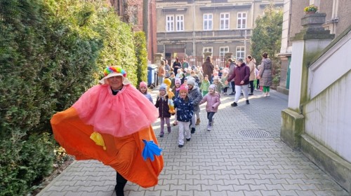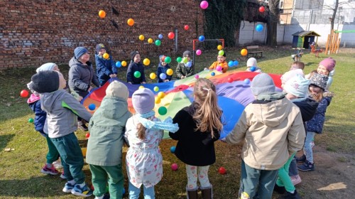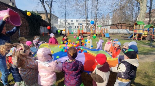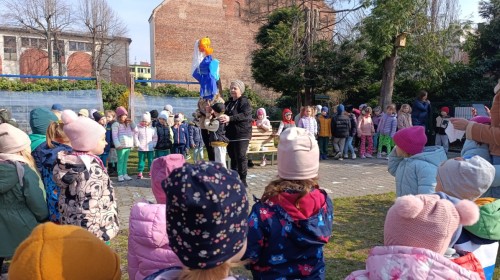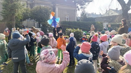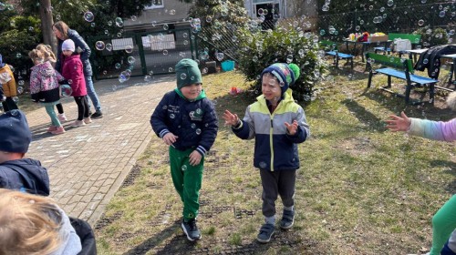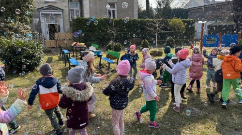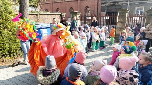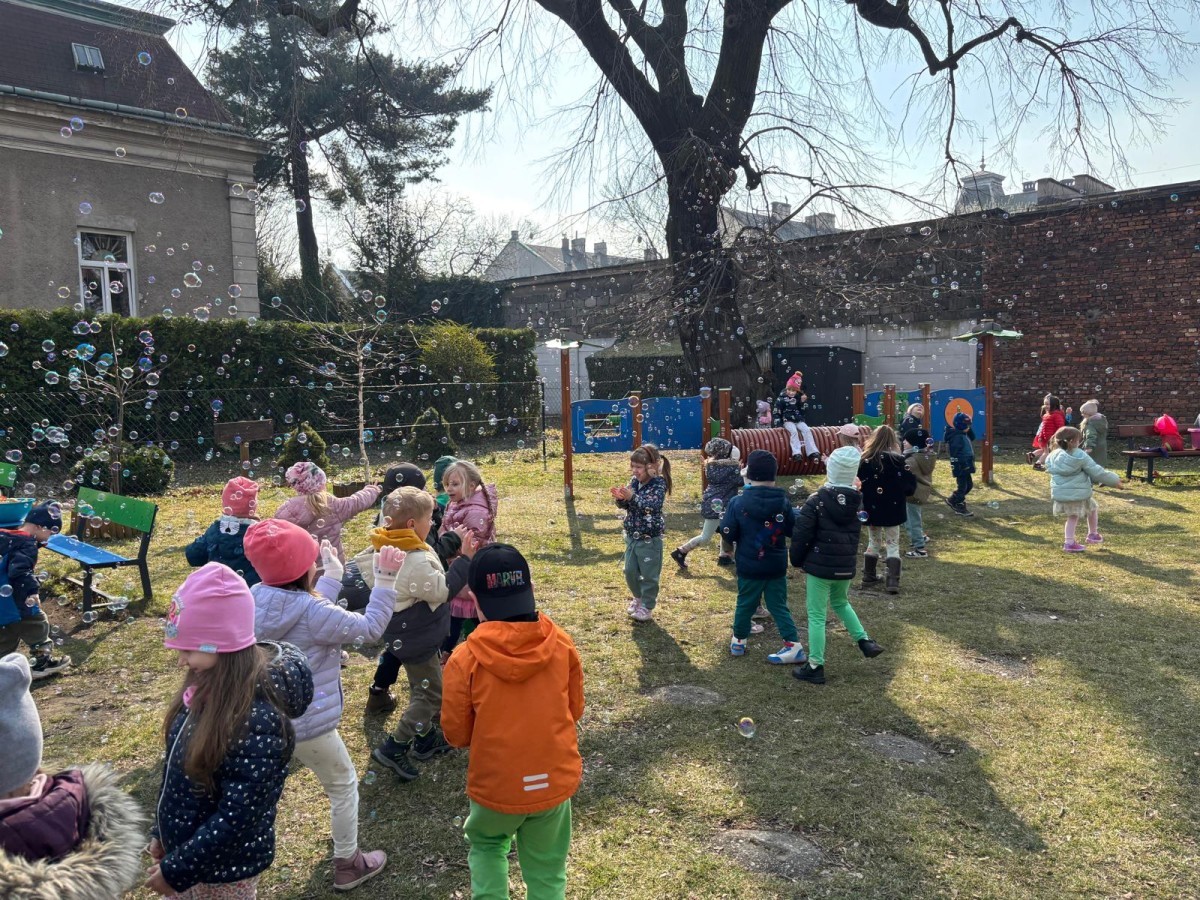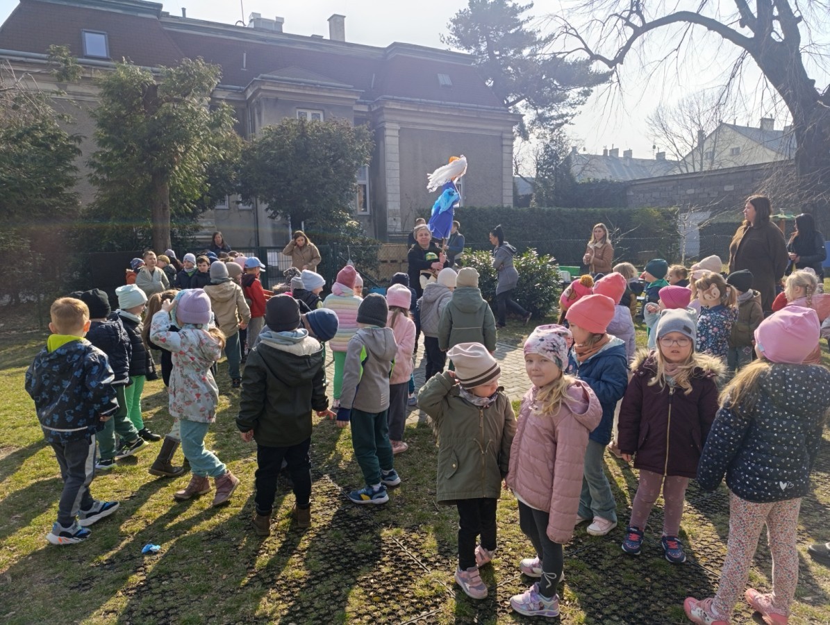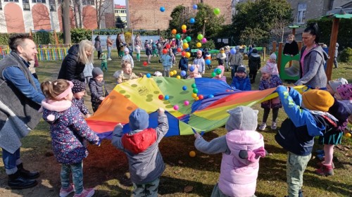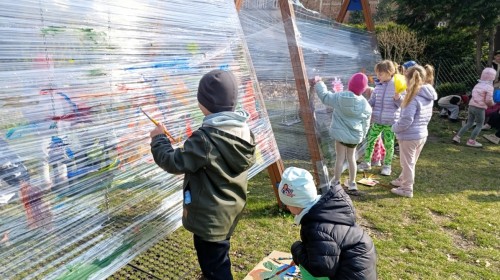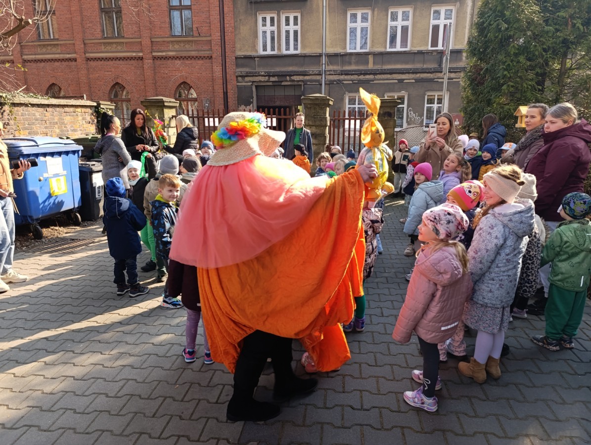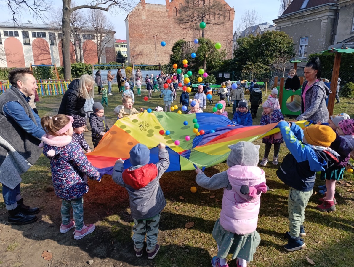 W piątek w naszym przedszkolu odbyło się wyjątkowe, pełne radości wydarzenie – pożegnaliśmy Panią Zimę i z wielką radością powitaliśmy Panią Wiosnę w naszym przedszkolnym ogrodzie!:) Były kolorowe bańki mydlane, wspólne zabawy z chustą animacyjną oraz radosne harce z balonami. Ogromną frajdę sprawiło dzieciom malowanie farbami na folii, które pozwoliło im wyrazić swoją kreatywność i stworzyć prawdziwie wiosenne dzieła sztuki. W trakcie zabawy pojawiły się również słodkie poczęstunki oraz wspólne tańce przy wiosennych piosenkach, które wprowadziły wszystkich w pogodny, pełen energii, WIOSENNY nastrój!:) To był dzień pełen uśmiechu, zabawy i pierwszych wiosennych promieni słońca. Witamy Cię, Wiosno - Najserdeczniej!:)