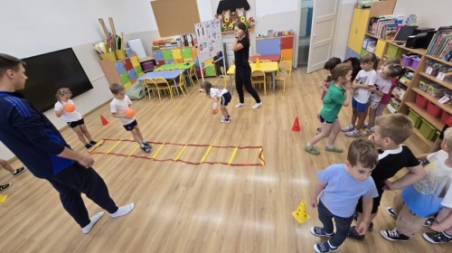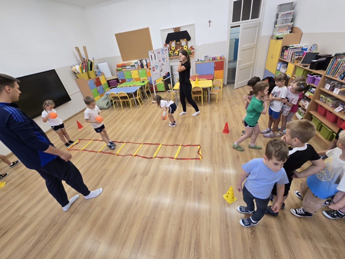 We wtorek w naszym przedszkolu odbyły się zajęcia pt. "WF dla przedszkolaka". Grupy starsze, Krasnoludki i Aniołki z wielkim zaangażowaniem brały udział w ćwiczeniach, rozwijając swoje zainteresowania sportowe i odkrywając zabawę w ruchu. Nauczyliśmy się, że sport to zdrowie i pasja a także dyscyplina, która uczy nas systematyczności, współpracy i szacunku.